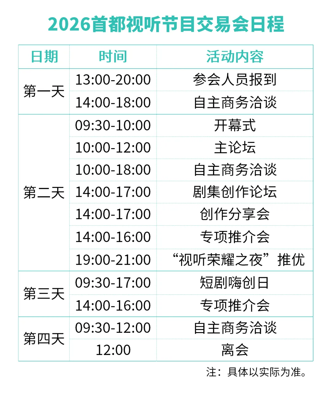 为深入贯彻国家广电总局关于“内容创新、技术融合、出海赋能”的发展导向,推动中国视听产业高质量发展,首都视听产业协会定于2026年5月12日至15日在北京会议中心举办2026首都视听节目交易会。