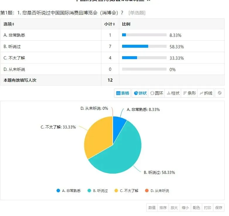 中国国际消费品博览会(以下简称“消博会”)是全球首个以消费精品为主题的国家级展会,是海南自贸港建设的重要标志性项目,也是推动全球消费精品贸易、引领消费潮流的核心平台。为精准掌握公众对消博会的认知现状、信息获取渠道及潜在参与意愿,本次调研面向未实际参展过消博会的普通公众开展问卷调查,共回收有效问卷12份,调研结果如下。