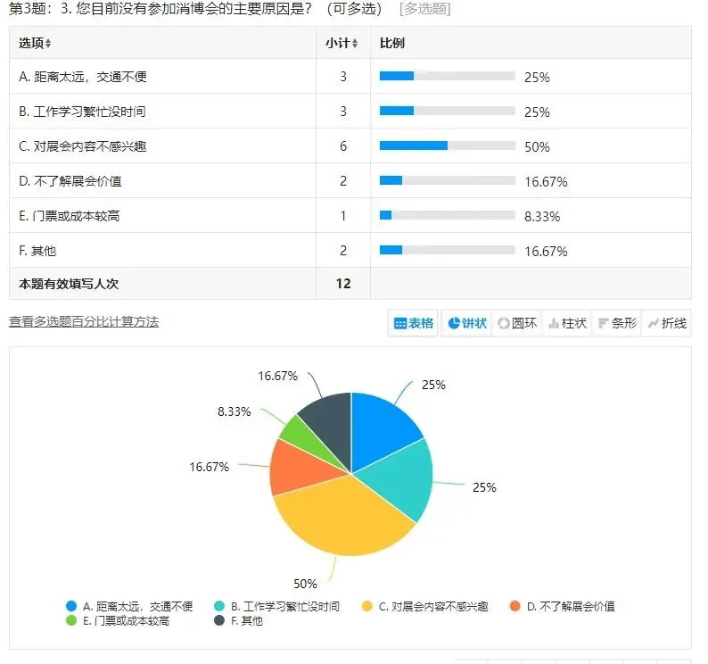 3. 未参展人群需求明确:调研对象均为未参展人群,其认知痛点、信息需求直接反映了展会的优化方向,为后续宣传、服务升级提供了精准依据。