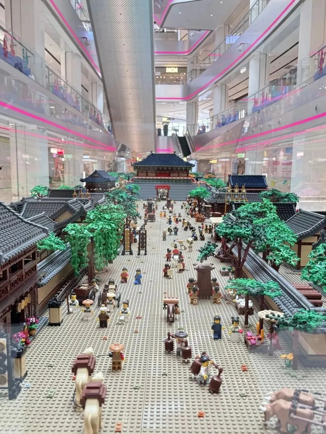全长26.5米的乐高实景装置《清明上河图》,用积木语言重构北宋市井繁华,将东方古画与西方积木艺术巧妙相融,虹桥舟车、行人百态皆栩栩如生。