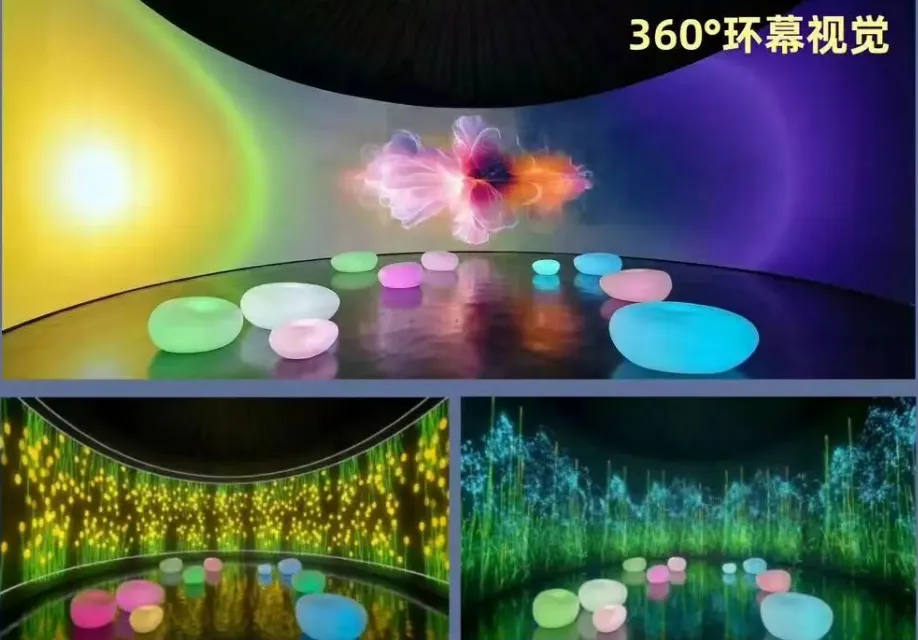 依托360度环幕LED与鼓型声学结构,展览在空间与感官维度上构筑出30分钟一循环的沉浸式声景艺术。观众可躺、可坐、或漫步其间,在光影流转中体验“声音被看见、画面被听见”的全感官沉浸,于十大春日意象中寻得专属共鸣。
