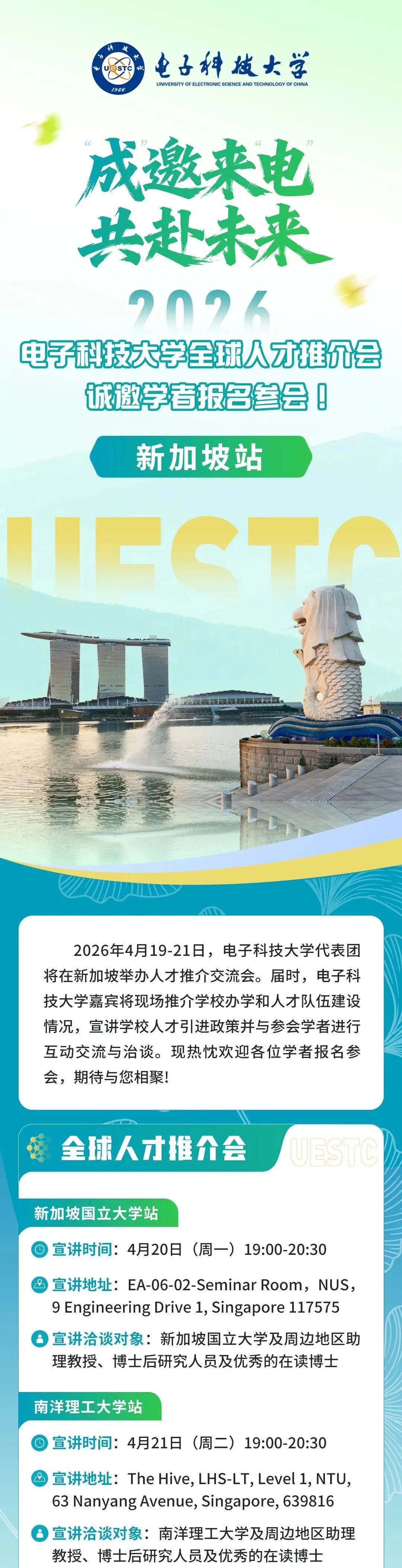 新加坡站丨电子科技大学全球人才推介会,诚邀学者报名参会!