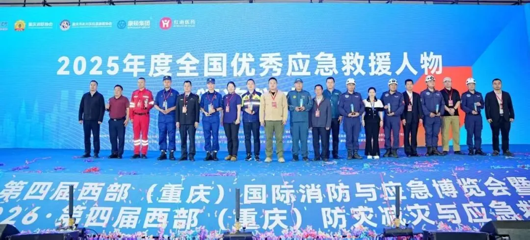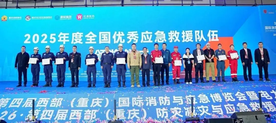 2026年4月10日上午,第四届西部(重庆)国际消防与应急博览会、第四届西部(重庆)防灾减灾与应急救援博览会在重庆盛大启幕。活动现场隆重举行了“2025年度全国优秀应急救援队伍”颁奖仪式,来自全国各地的优秀应急救援队伍代表登台领奖,接受行业与社会的表彰与肯定。