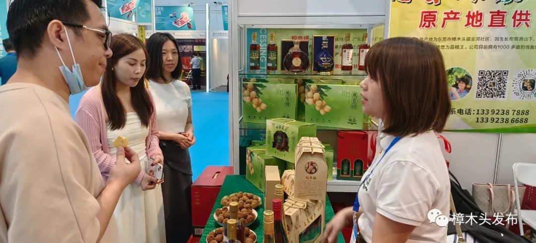 在国际特色食品展馆,广东岭南荔园发展有限公司携荔枝果干以及“观音绿”荔枝月饼、曲奇饼、雪花酥,荔枝醋、荔枝酒等产品参展,吸引不少采购商前来咨询,感受荔枝及深加工产品的独特魅力,进一步提升“观音绿”的知名度和美誉度。
