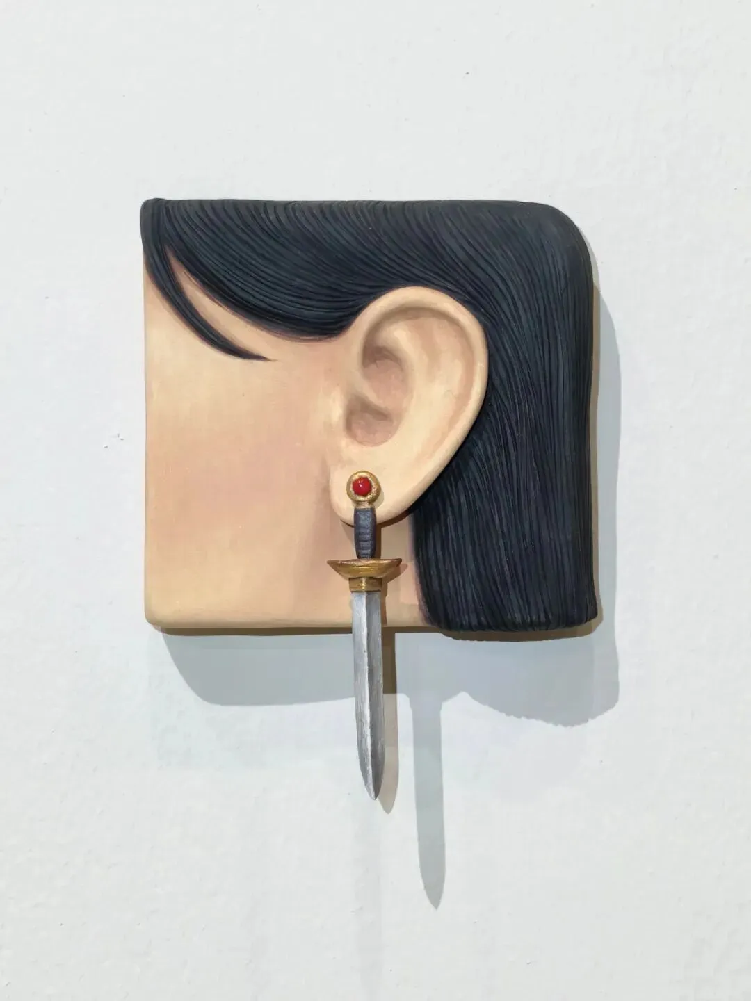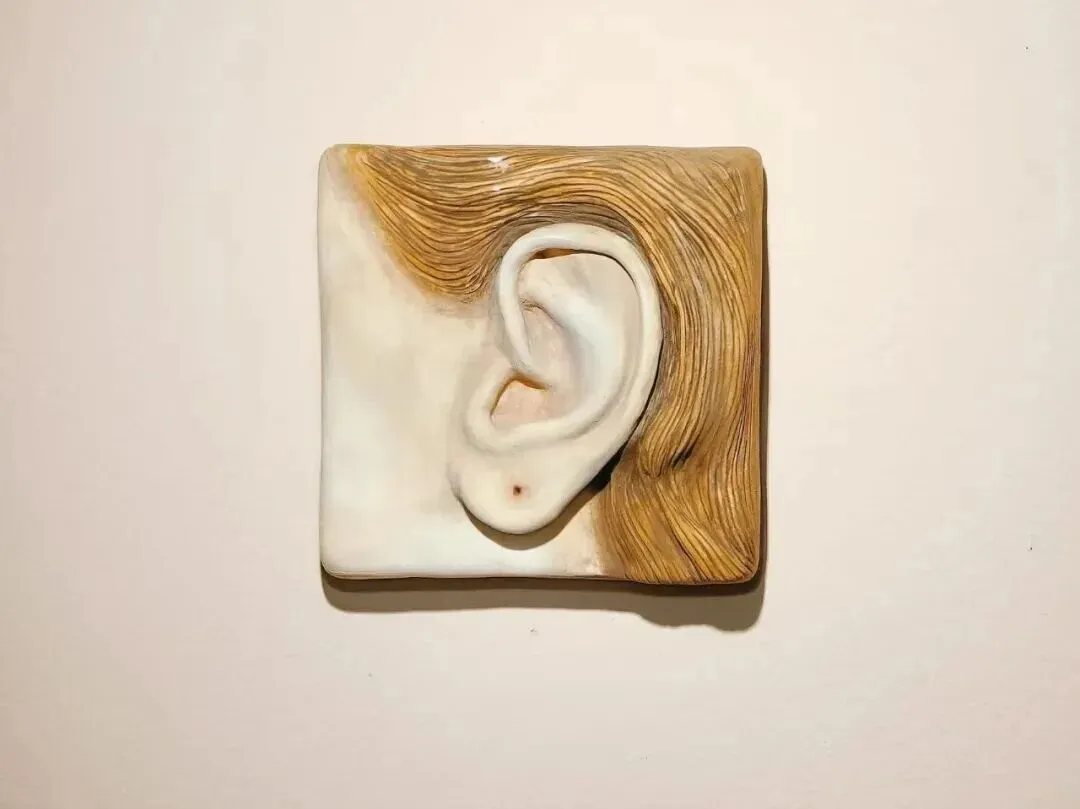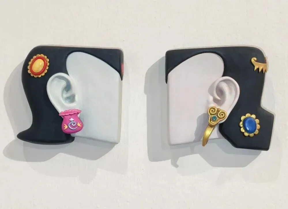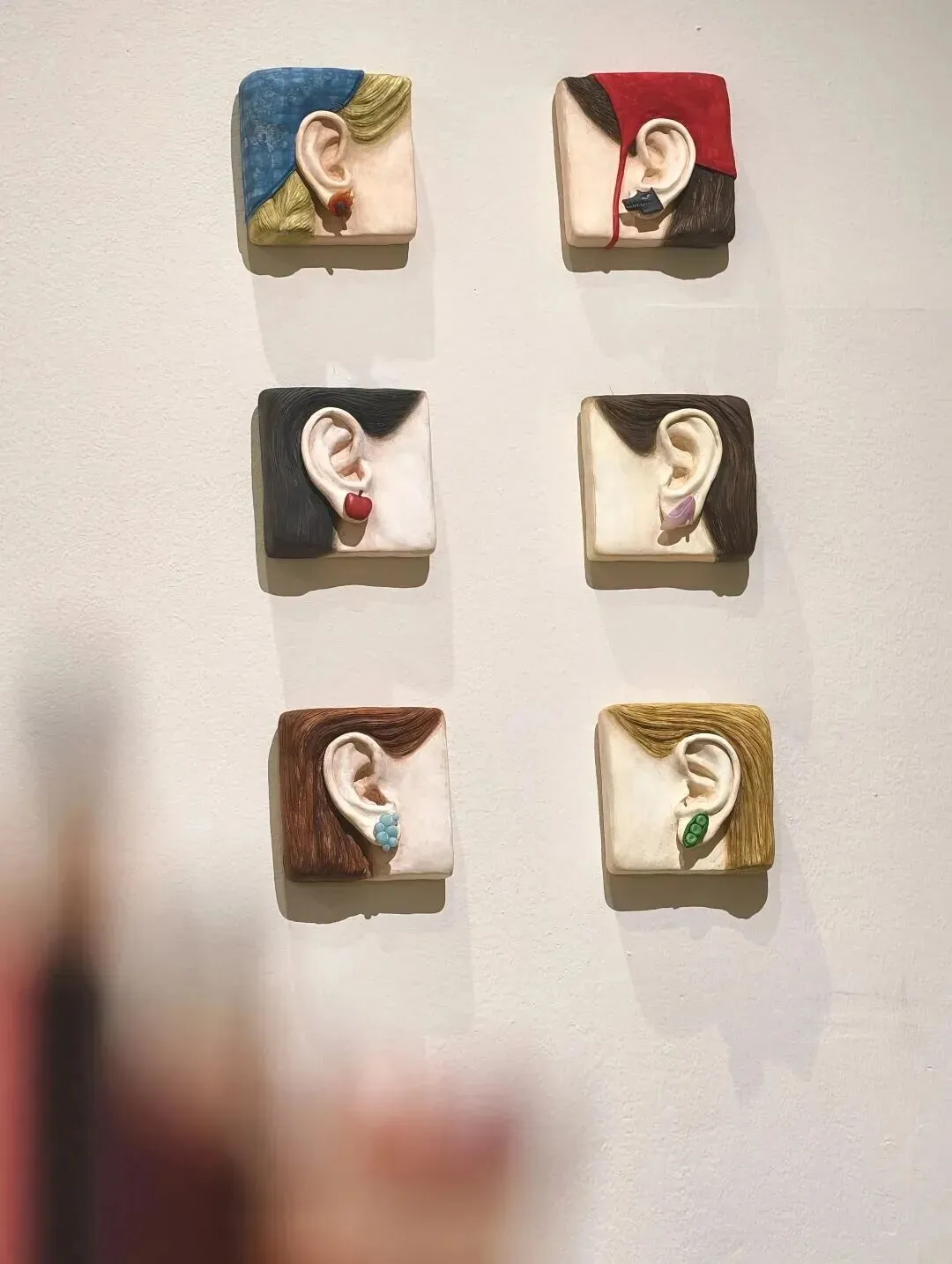展览以“耳朵”为最小叙事单位,将《白雪公主》《小红帽》《爱丽丝梦游仙境》《阿拉丁神灯》《嫦娥奔月》等跨文化童话与民间传说,压缩为可佩戴的“微型雕塑”。在看似轻盈、甚至带有玩具感的形式之中,折叠进一代人共同的成长经验:那些曾被反复讲述的故事,那些关于“女孩应当如何”的隐性规训,以及第一次在身体上做出选择的微小瞬间。