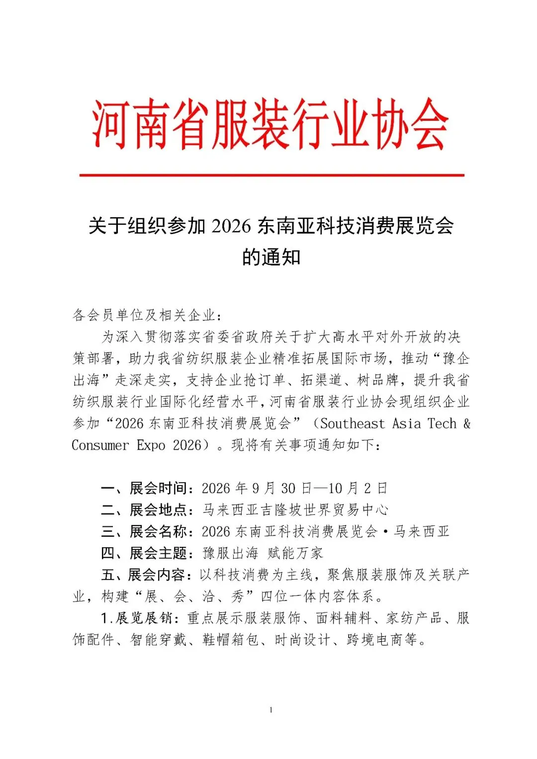 关于组织参加 2026 东南亚科技消费展览会的通知