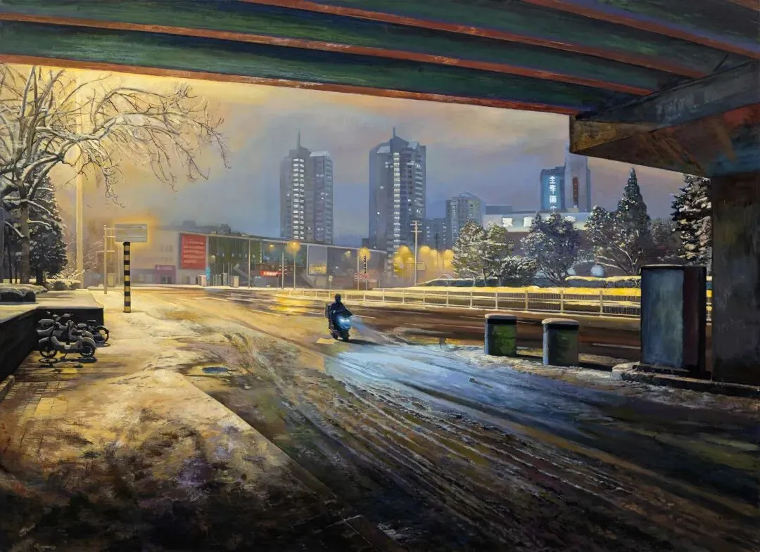诚品画廊北京将于2026年4月18日至7月5日推出陆亮个展“潜行”。本次展览以“潜行”为题,源自电影《潜行者》(1979,安德烈·塔科夫斯基)中的精神意涵,指向一种缓慢进入与持续感知的过程。艺术家通过反复描绘与长期观察,在变化与不确定中不断逼近真实,使创作成为一种介于经验、记忆与历史之间的深入探索。陆亮,中央美术学院油画系第三工作室教授、博士生导师,1975年生于上海,1999年、2005年分别取得中央美术学院壁画系学士和硕士。长期以来,他既活跃于教学一线,也在个人创作中不断拓展具象绘画的边界。在这次展览作品中,陆亮延续了对“记忆空间”的持续关注——从城市边缘的夜路街区到富有历史意味的空间场域,这些场景既具体可辨,又带有某种超现实的疏离感。他更像一位“潜行者式”的观察者:既置身其中,又保持距离,以细腻而敏锐的目光记录下对时代的感受。陆亮,《雾霾中的望京SOHO》,2014-2017,油彩/画布,160 x 120 cm此次展览内容围绕三条相互关联的线索展开:一是以艺术家的日常为核心的城市经验,呈现城市及城市边缘在发展中的变迁与叠加;二是以“原子城”为线索的历史空间,指向特定时代背景下的集体经验与国家叙事;三是花土沟,一个西北工业小城的生存状态与视觉记忆。三者在艺术家的观察与表达中彼此交织、折叠,重构一个新“真实”。陆亮的“潜行”打破了过去和现在、想象和现实之间的平行结构,将日常、过往、记忆、想象,在同一个时空相遇、重叠、汇合。陆亮,《雪夜孤骑》,2020-2025,油彩/画布,205 x 280 cm作品《雪夜孤骑》描绘北京夜色与雪景交织中的行进瞬间,人物在空旷死寂的马路上独自前行,呈现出时间凝滞般的氛围,地上积雪反射昏黄的路灯映照瑰丽的夜空,更加反衬个体在城市空间中所承受的压力、孤独与异化。《中国骑手》则以浓烈红底与繁复花卉铺陈画面,艺术家将骑手与摩托车加以肖像化处理:车身红白火焰纹张扬外显,骑手深色服饰内敛克制,二者形成对照与呼应,在华丽背景中凸显骑手的个体选择与个性表达。陆亮,《花土沟2》,2017,油彩/画布,60 x 90 cm在花土沟等题材中,陆亮则呈现出另一种复杂情绪:未来感与荒凉并存,乐观与忧郁交织,构成当代中国工业化进程中的独特切片。“原子城系列”(2018–2026)中,陆亮深入中国西部曾承载重要历史使命却逐渐被遗忘的空间,将其转化为关于时间、记忆与现代性的视觉档案。斑驳的墙面、坍塌的结构与逐渐侵入的自然,共同构成一种“时间的物质化痕迹”。陆亮,《房间1》,2018-2024,油彩/画布,280 x 205 cm陆亮的绘画并非简单的再现现实,更强调绘画的内部逻辑与感受的提炼,通过反复推敲的光影色彩与层层叠加的绘画过程,使画面承载时间与经验的沉积。在拥有影像般高浓度的作品叙事中保留了丰富的手感,也达成了内在其中的视觉张力与极富诗意的精神性表达。