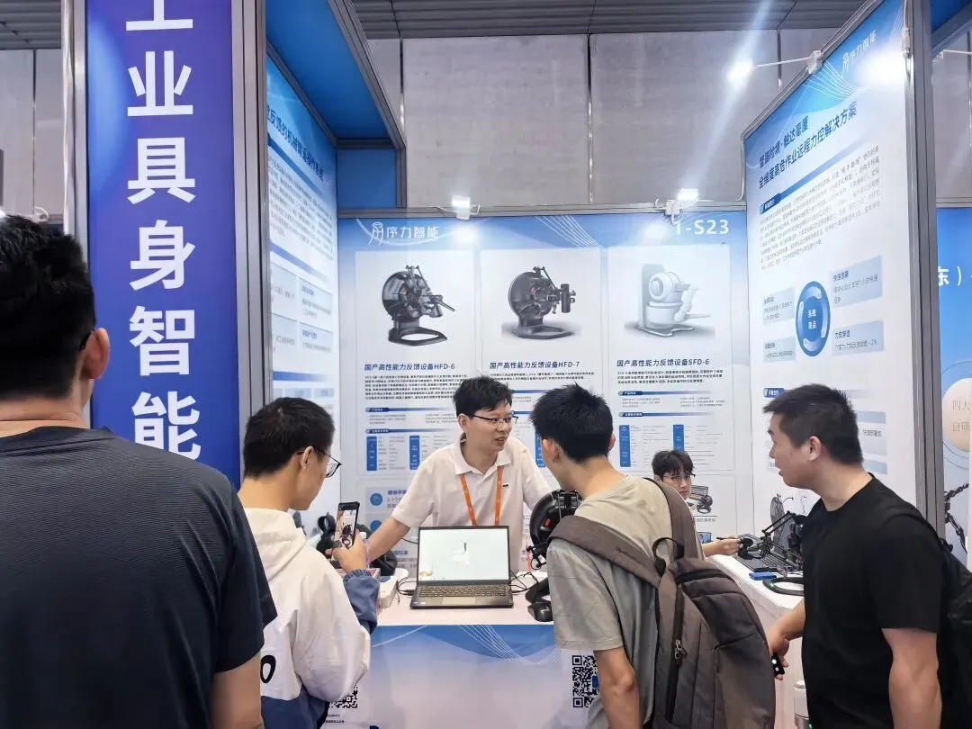 2026ITES深圳工业展圆满落幕! 序力智能携国产高性能力反馈设备矩阵,重磅登陆1号馆具身智能、人形机器人产业链专题展示区,为工业遥操作、人机交互带来全新 “触感” 解决方案。序力智能遥操作解决方案为首套基于国产力反馈设备的多模态力觉遥操作机械臂系统,突破人机协同作业边界,融合混合现实空间定位与辅助机械臂运动决策技术,可实现水下机器人探索、核电站高危检修、地震废墟救援等极端场景精准介入。本次展会中,序力智能聚焦具身智能核心需求,现场展示HFD-6六自由度力反馈设备、HFD-7七自由度力反馈设备、SFD-6串联力反馈设备三大核心产品:✅自主可控核心技术,填补国产高端力反馈设备空白; ✅4kHz高频刷新/高精度力觉还原,适配机器人遥操作、手术模拟等场景; ✅与Chai3D/iMSTK/SOFA/Unity3D等主流仿真框架/引擎打通兼容,可方便进行二次开发,快速落地人形机器人、工业自动化、虚拟仿真方案; 展会现场,展位人气持续高涨,专业观众、行业伙伴沉浸式体验力反馈技术的虚实交互魅力,深入交流具身智能、遥操作机器人的落地应用。以力觉为桥,连接虚拟与现实。序力智能将持续深耕力触觉交互技术,为具身智能、人形机器人产业链提供核心硬件支撑,助力中国高端制造智能化升级!