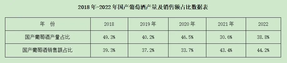 2018年至2022年五年时间里,葡萄酒国产和进口市场均腰斩过半,葡萄酒在中国似乎越来越水土不服。但危中有机,我们在下滑的葡萄酒行业中发现了一个有趣的事实:国产葡萄酒正在逐步重归主流。从产量和销售额占比上看,国产葡萄酒销售额占比自2020年触底反弹,目前已超越2018年市场占比,同时产量占比也自2021年回升。另外如果从销售均价上看,近年来国产销售均价持续上涨已超过进口葡萄酒销售均价,剥离舶来属性的国产葡萄酒价值越来越受到消费者认可。