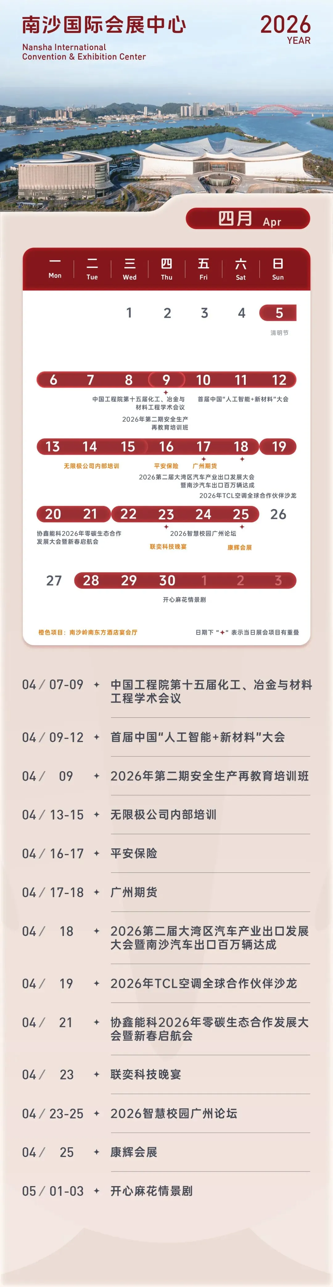 新鲜出炉!南沙国际会展中心2026年4月活动排期