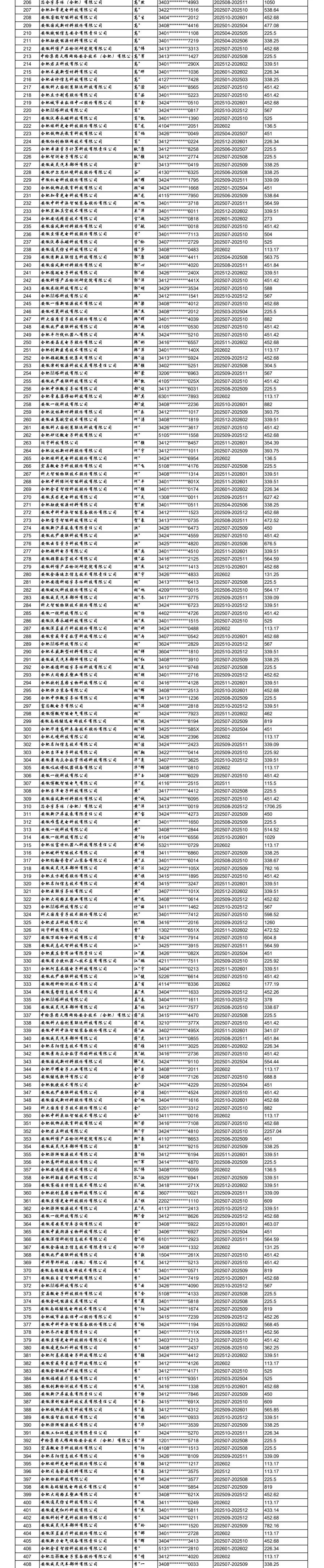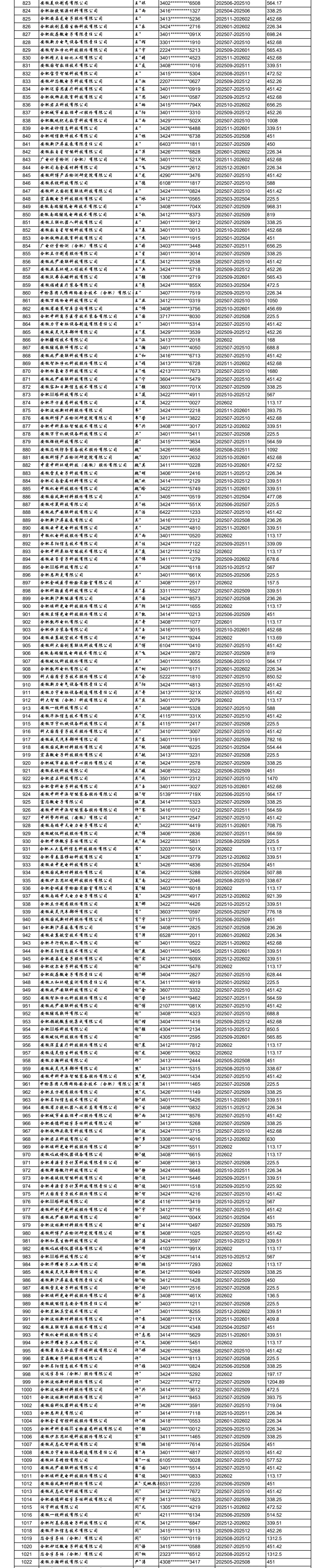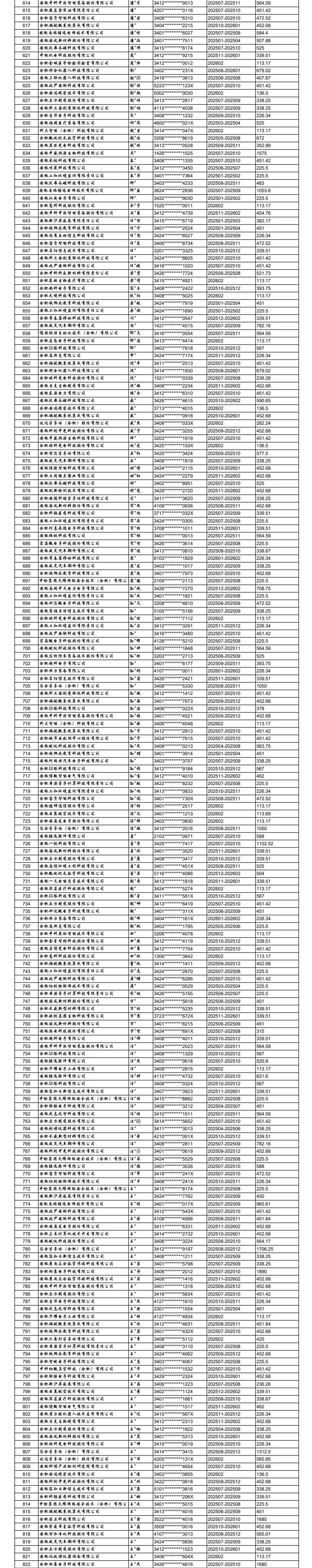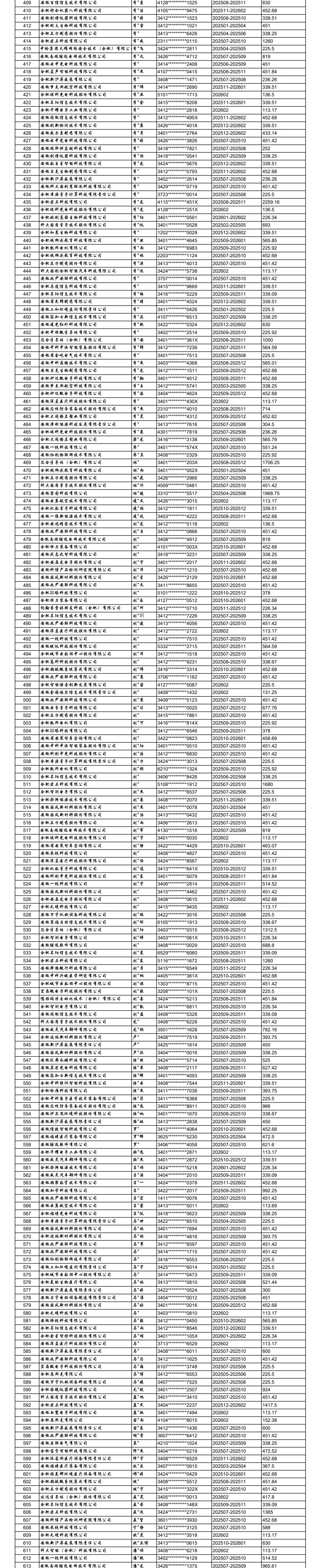 合肥高新区重点行业领域中小微企业社保补贴(第三批)公示表