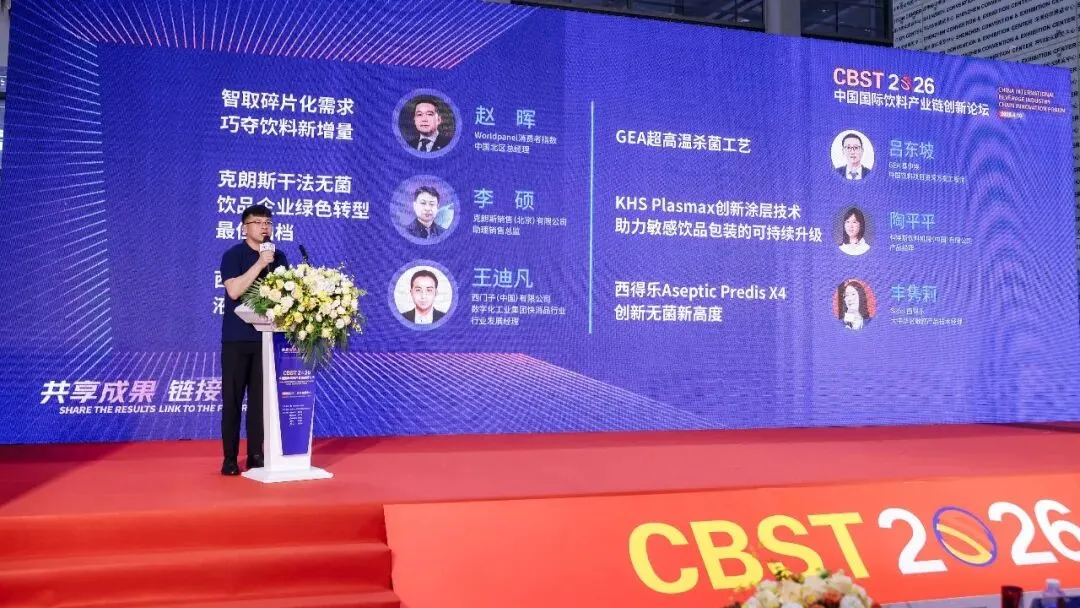 与展会同址同期,以“共享成果 链接未来”为主题的“CBST2026中国国际饮料产业链创新论坛”在馆内会议室启幕。中国饮料工业协会理事长张金泽出席本次论坛,中国饮料工业协会副理事长李涛主持主论坛。