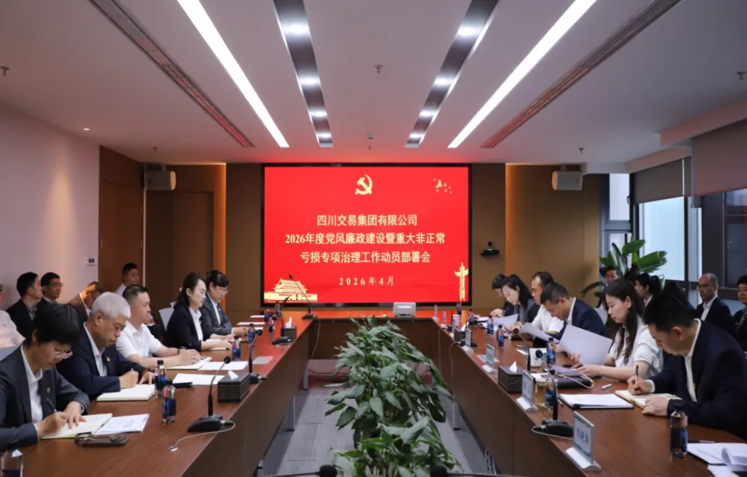 4月10日,四川交易集团召开2026年度党风廉政建设工作会暨重大非正常亏损专项治理工作动员部署会,深入贯彻落实二十届中央纪委五次全会、省纪委十二届五次全会和四川发展(控股)公司2026年度党风廉政建设工作会议精神,进一步落实全面从严治党政治责任。四川交易集团、西南联交所领导班子出席会议,西南联交所党委副书记、董事、总经理孙念波主持会议。