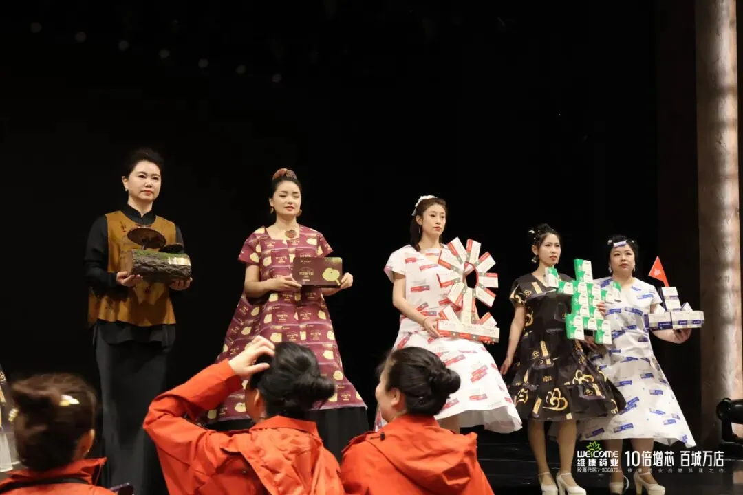 匠心维康·神农时尚秀:四平神农大药房连锁股份有限公司团队以别开生面的形式亮相,展现了医药人的风采与创意。