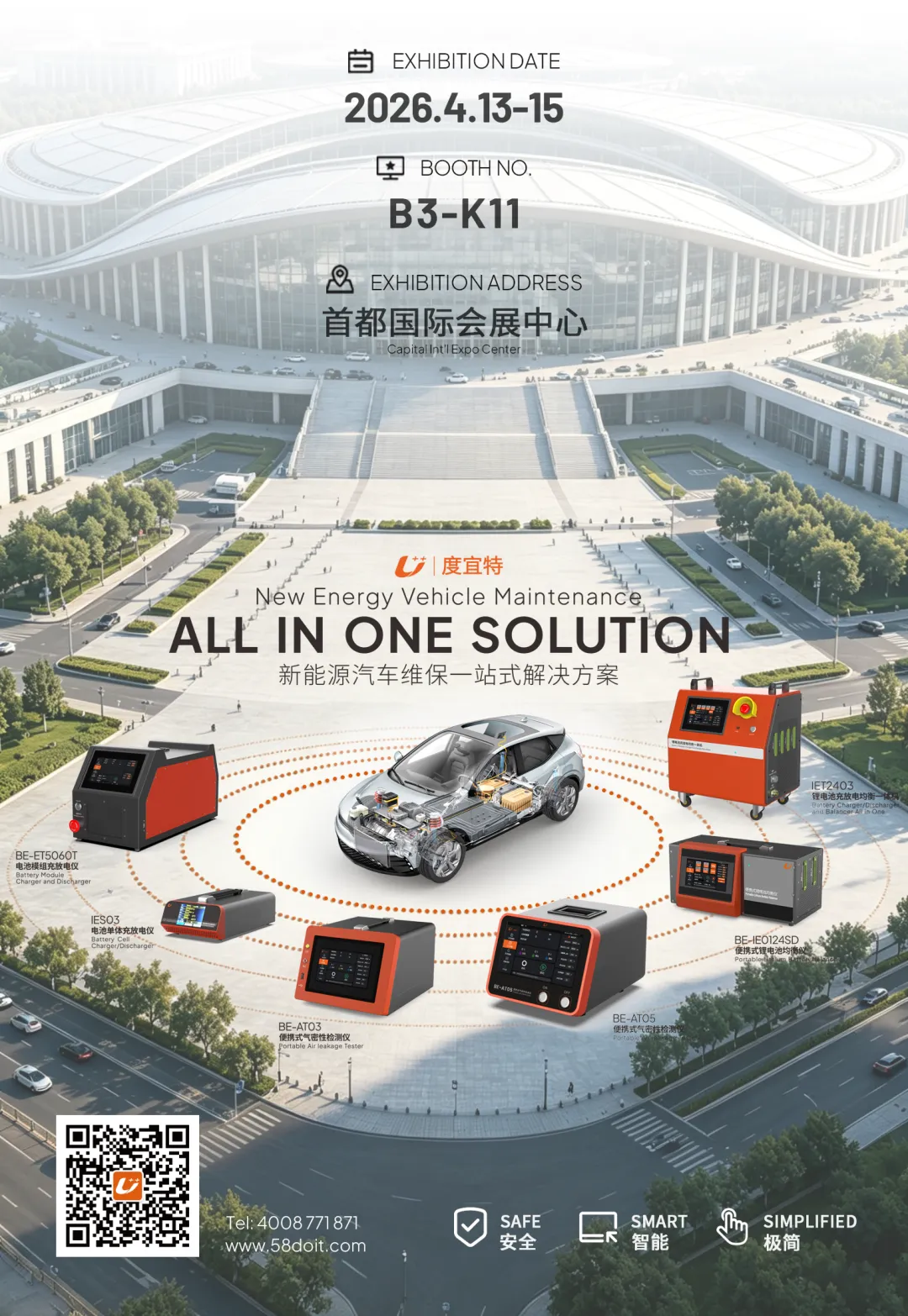 2026 年 4 月 13 日 - 15 日,AMR 中国国际汽车维修检测诊断设备、零部件及美容养护展览会将在首都国际会展中心盛大启幕。度宜特将携全系列新能源汽车维保核心设备重磅亮相,展位号B3-K11,诚邀各位行业伙伴莅临现场,共探新能源维保新机遇!