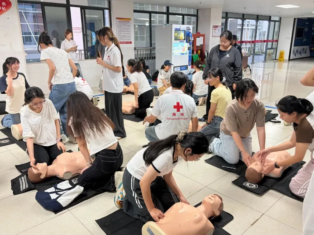 我校高度重视本次消博会志愿服务工作,将其作为学校服务自贸港建设、展现青年担当的重要载体,精心设计“双轮驱动”培训体系:一是前期开展应急救护强化训练,由我校红十字会学生分会指导老师和学生为大家普及心肺复苏和海姆立克急救法。培训过程中,老师通过理论讲解、动作演示、分组实操、逐人考核的方式,确保每一名志愿者都能熟练掌握核心救护技能,筑牢志愿服务安全防线。二是本次专项培训,重点围绕志愿服务通用能力、大型展会服务规范等内容展开,全面提升志愿者综合服务水平。