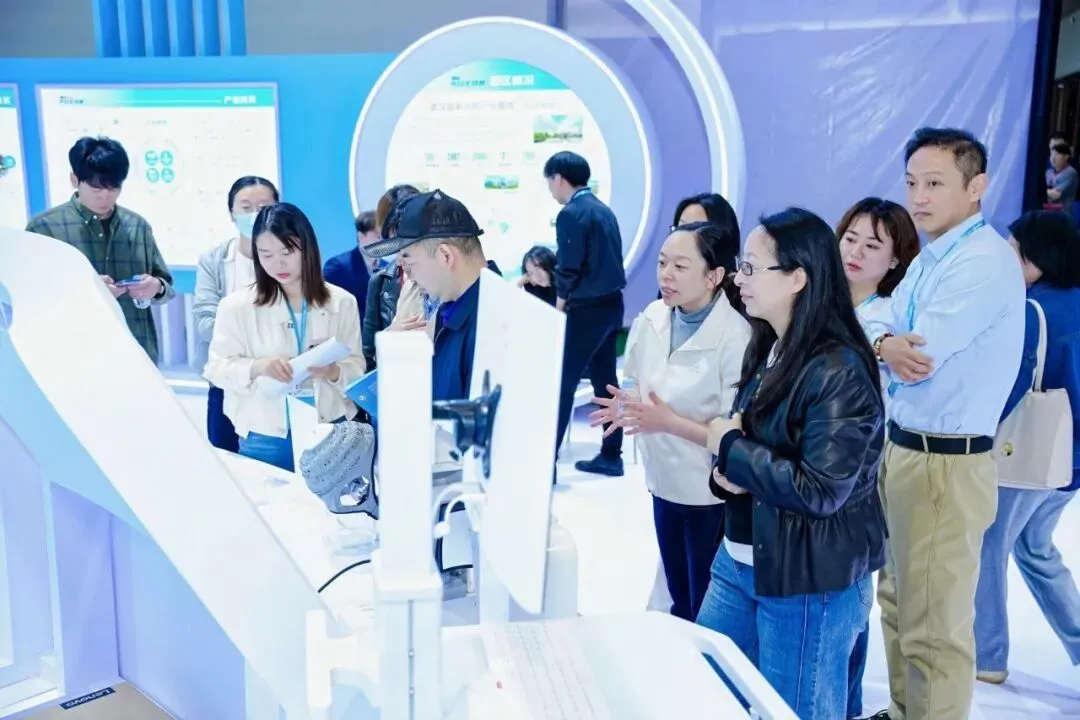 在展位中心区域,聚焦未来产业风向,重磅推出脑机接口、数智医疗、合成生物、细胞与基因治疗(CGT)及健康消费五大前沿领域板块。脑机接口重点展示双向无线脑电帽、交互式脑机-光磁联合调控系统、智能超声无创脑机治疗系统等产品;数智医疗展示了数字切片扫描分析系统、AI磁控胶囊胃镜系统、消化内镜人工智能辅助诊断系统-内镜精灵、热层析成像系统+乳腺热层析AI辅助分诊软件等产品;合成生物重点展示重组人白蛋白注射液(水稻)、营养素生物合成系列、饲用酶制剂等产品和技术;溶瘤Ⅱ型单纯疱疹病毒药物OH2(BS001)注射液、NR082眼用注射液、重组溶瘤腺病毒注射剂KD01等细胞与基因治疗药物产品;健康消费展区展出了保健、食品、美容护肤及家用医疗器械等产品;现场吸引不少观展者目光。