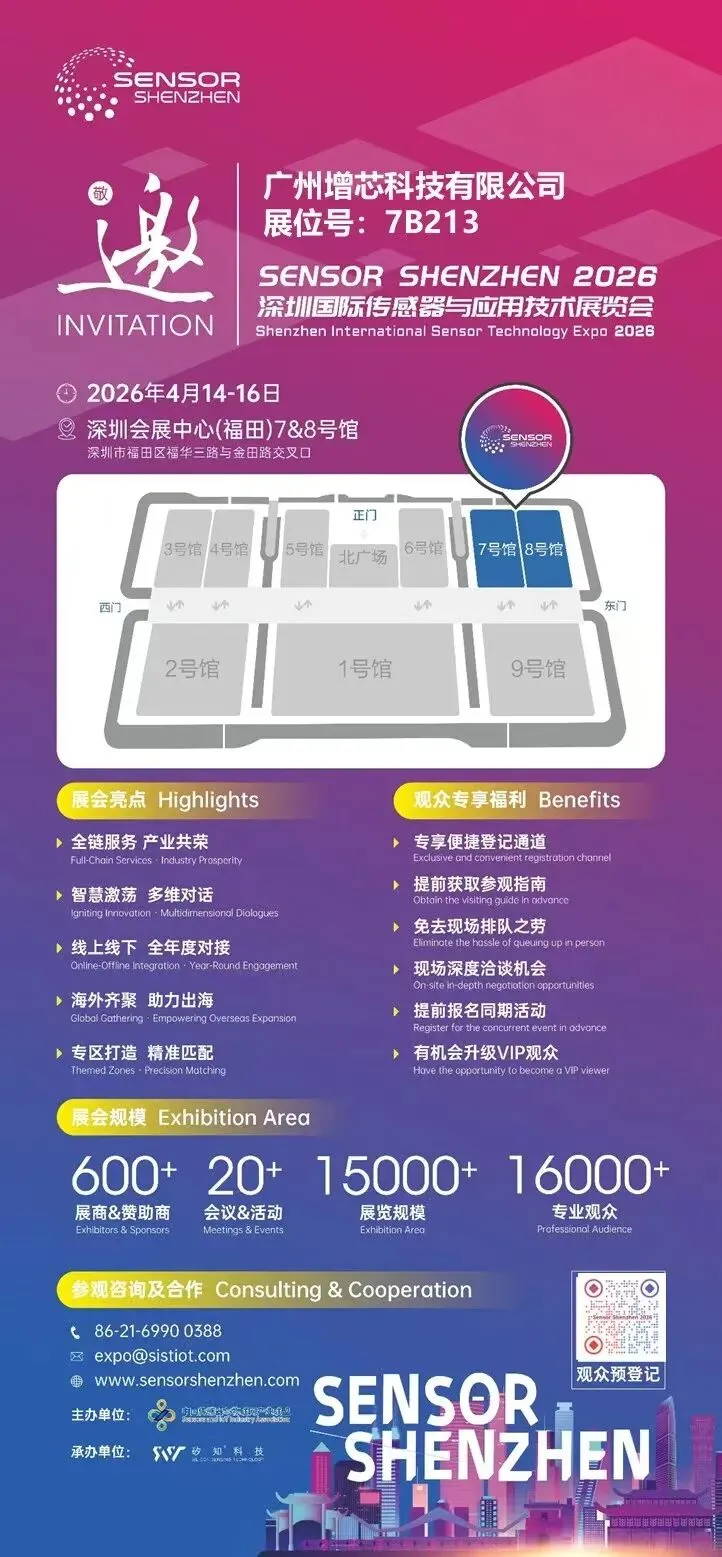 2026年4月14日至16日,深圳国际传感器与应用技术展览会(Sensor Shenzhen 2026) 将在深圳会展中心(福田)7&8号馆盛大举行。作为国内传感器领域的年度盛会,本届展会汇聚了600+展商、15000+专业观众,同期举办20+场会议活动,覆盖全产业链。