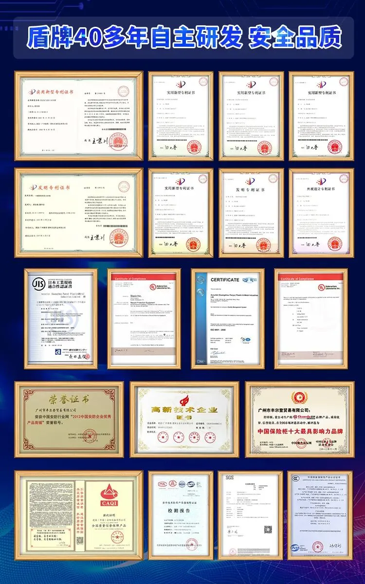 自 1980 年创立以来,盾牌始终深耕防火保险柜领域,40 余年坚守初心,成为全球防火保险柜生产商之一,产品远销美国、欧洲、日本、东南亚等 20 多个国家和地区,与全球 500 强企业 Honeywell、First Alert 长期合作,誉满全球。作为中国高新技术企业、UL 认可生产商,盾牌是国内唯一获得塑料防火保险柜企业标准的企业,以技术创新筑牢安全壁垒。