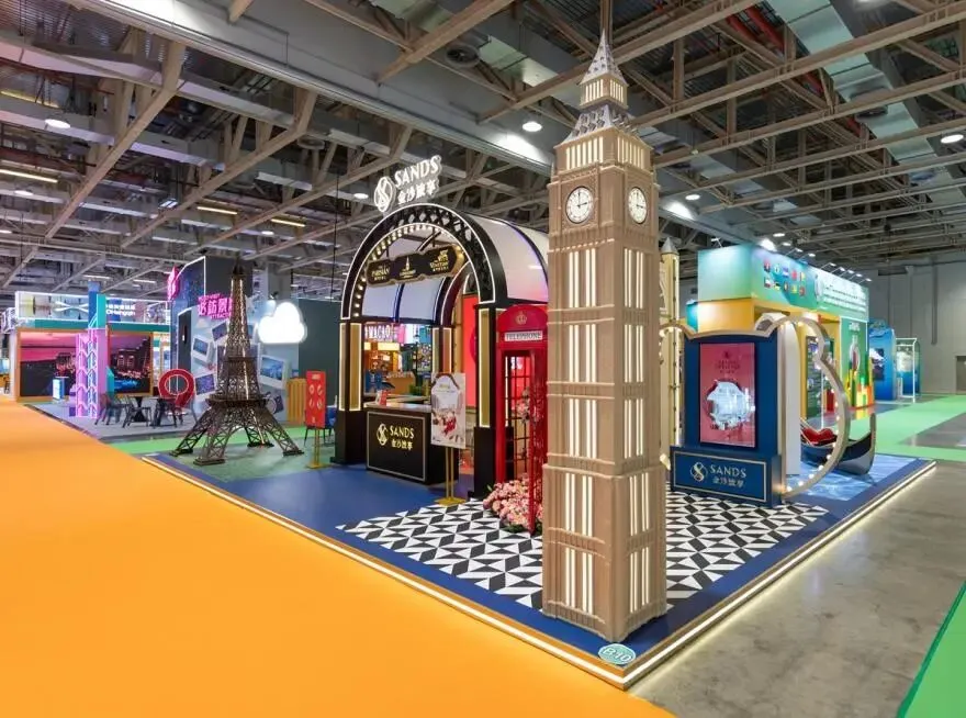 金沙中国的展位造型夺目,四面开放,通过标志性的贡多拉船、伊丽莎白塔(大本钟)、红色电话亭及巴黎铁塔大型装置,生动展现旗下三大相互连通的综合度假村——澳门威尼斯人®、澳门伦敦人®及澳门巴黎人® 的独特魅力,并展示金沙旅享的精彩餐饮、娱乐及住宿体验短片;现场访客下载金沙旅享手机应用程序并注册成为会员,即可领取价值超过2,000澳门元的迎新礼包,同时获得精美礼品一份。