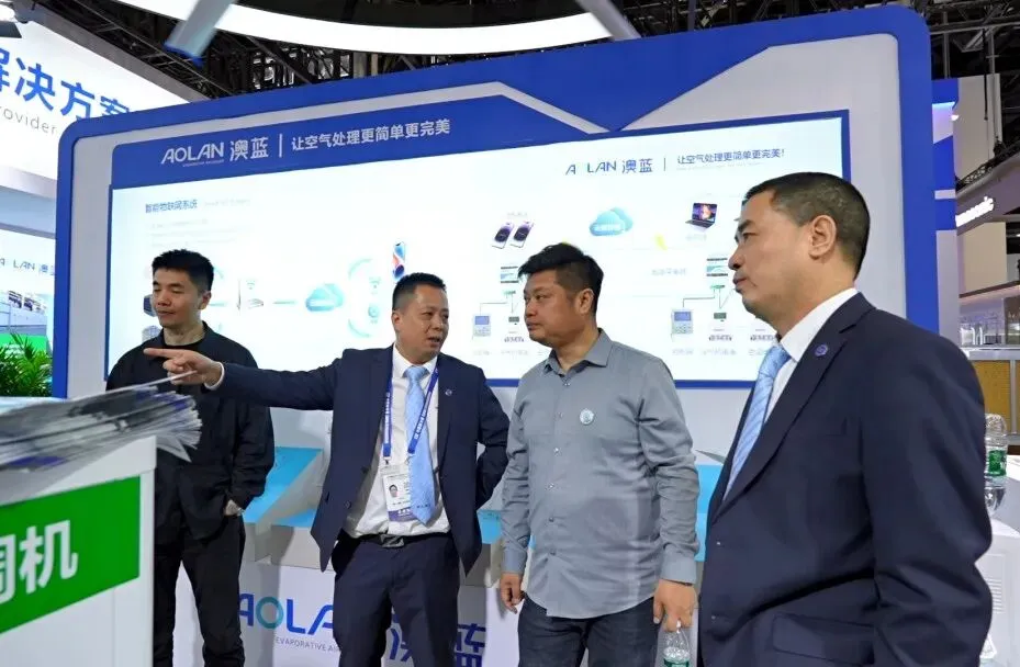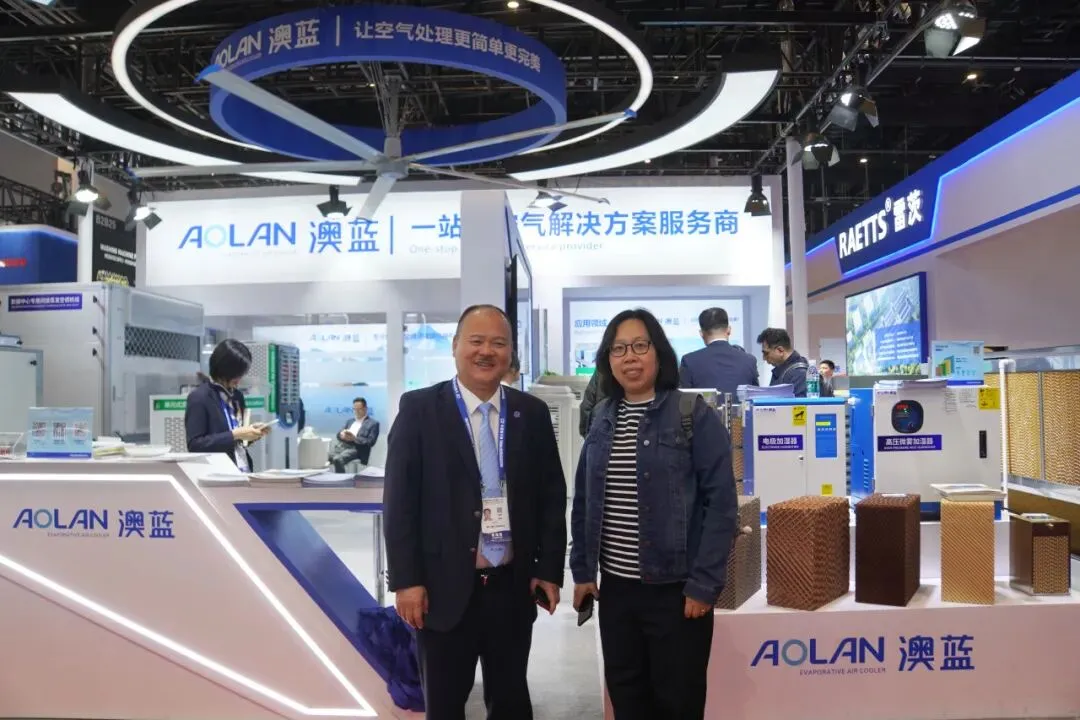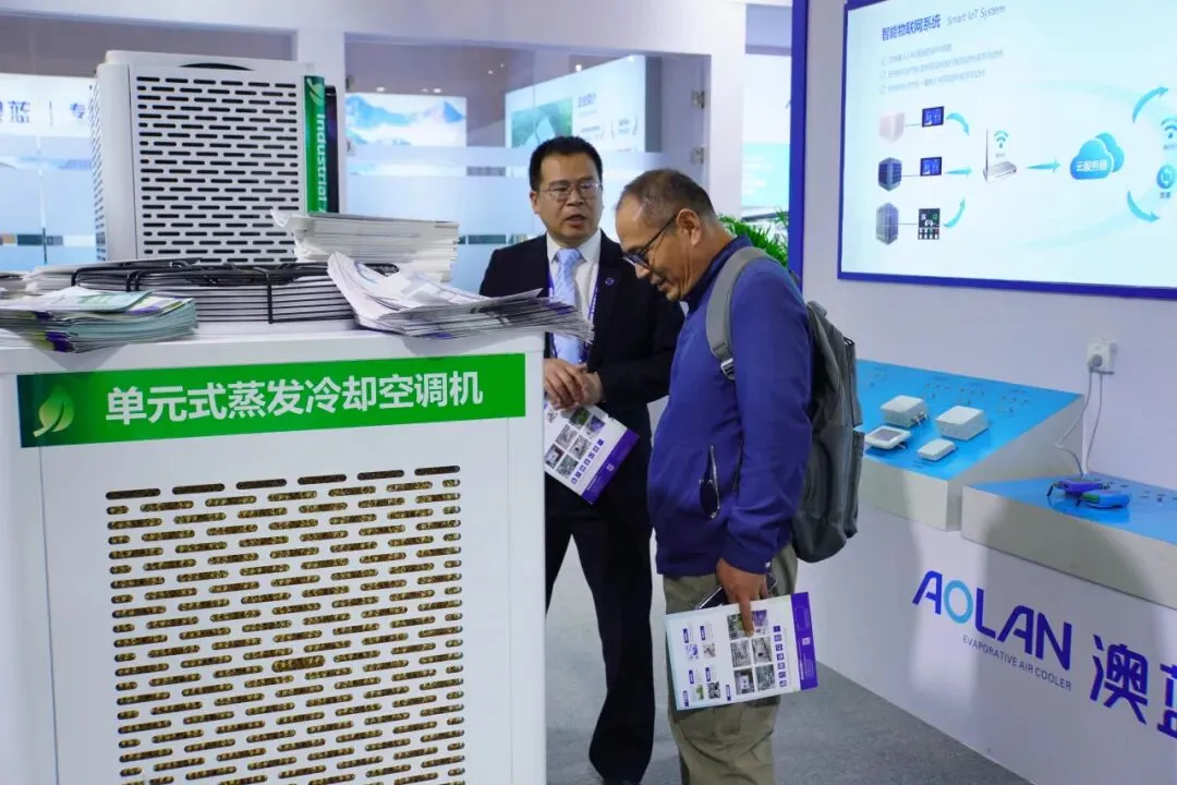 作为蒸发冷却领域的领军企业,澳蓝携十多款绿色节能新品精彩亮相,全方位展示公司在蒸发冷却、溶液调温调湿应用领域的硬核实力。本次展会澳蓝集中展出蒸发式冷气机、溶液调温调湿机组、数据中心专用间接蒸发空调机组、单元式蒸发冷却空调机、湿膜/阻燃湿膜、工业大吊扇等核心产品。产品覆盖工业、商业、数据中心、公共建筑等多个应用场景,凭借高效节能、低碳环保等优势,吸引了众多行业专家、合作伙伴及专业观众驻足参观、深入交流。