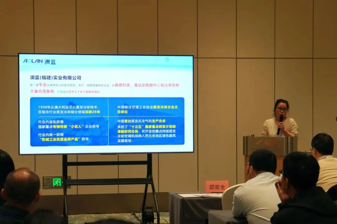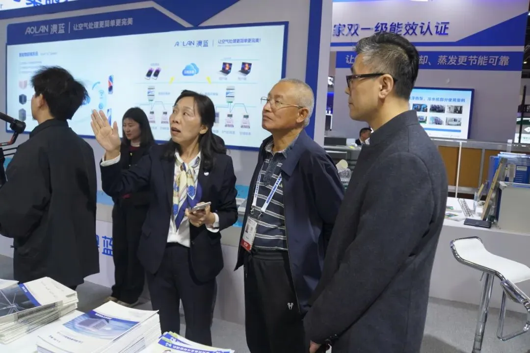 展会期间,澳蓝福州联通中心机楼节能改造项目成功入选展会“新产品及臭氧气候友好产品应用案例”,彰显技术实力与行业认可。总工程师何华明教授级高工、高级工程师郭改英受邀在技术论坛作专题分享,深度解读蒸发冷却技术的创新与应用。此外,勘探设计协会总工团亲临展位深度交流,赛尔传媒现场专访黄华铃董事长,剖析空调行业风口及产业未来新发展。