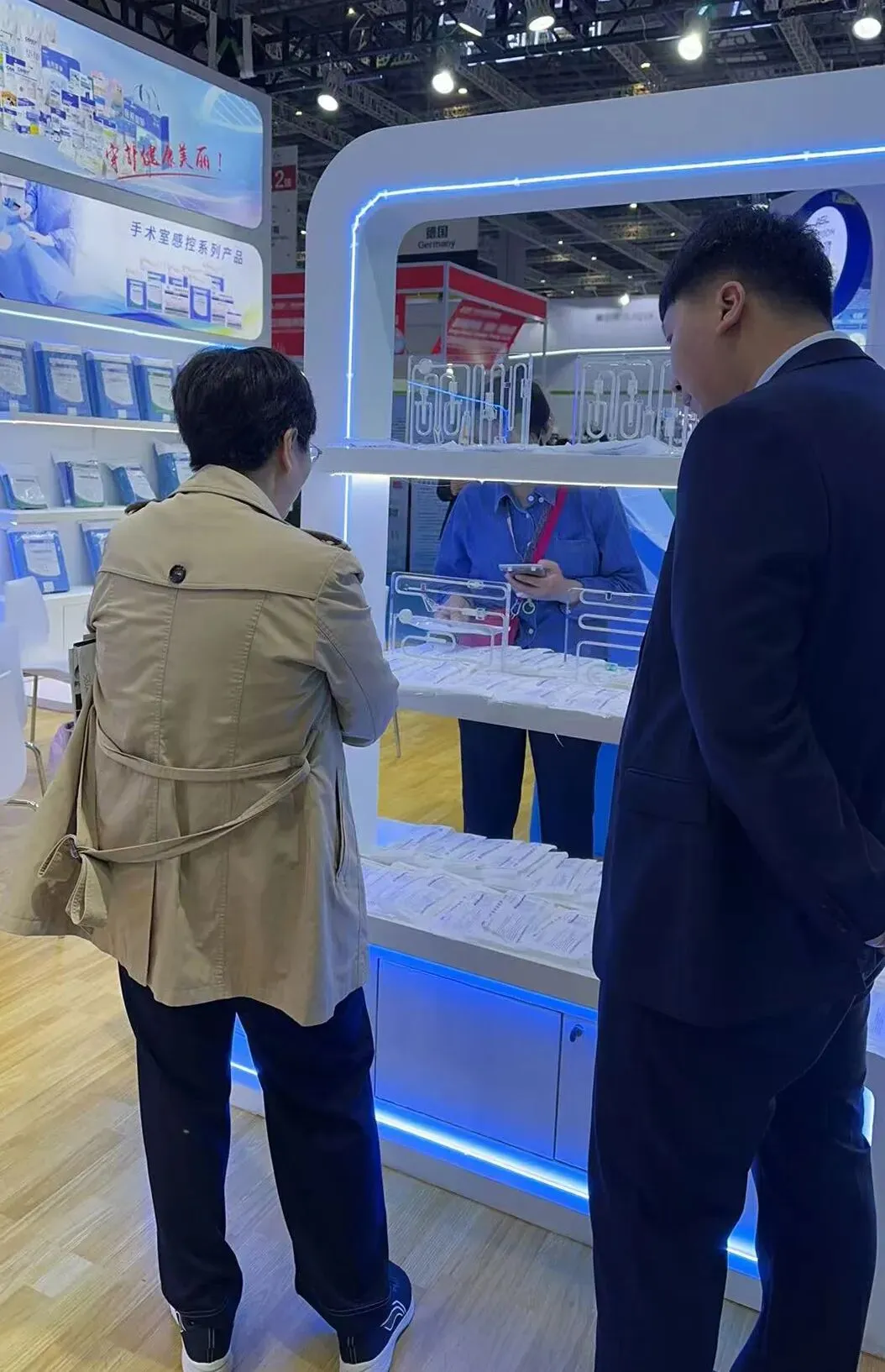 展位现场特设“医用输液器演示区”,通过产品模型直观呈现结构特点与出色性能。展示一经推出,便吸引了众多深耕一线的临床专家与渠道客商的重点关注,现场咨询络绎不绝,并收获了大量试用邀约及合作采购意向。