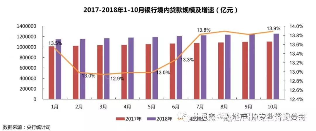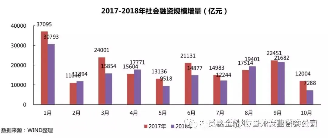 今年1-10月,社会融资规模累计新增16.13万亿元,与去年同期相比下降14.6%( 2017年1-10月累计为18.90万亿元),实体经济融资规模缩减。