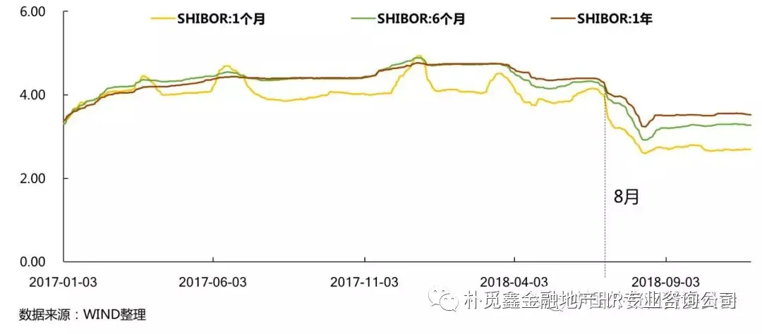 银行拆借方面,上海银行间同业拆放利率自2017年1月以来逐步抬升并处于高位运行,2018年8月开始快速下移并逐步企稳,较年初大幅回落。