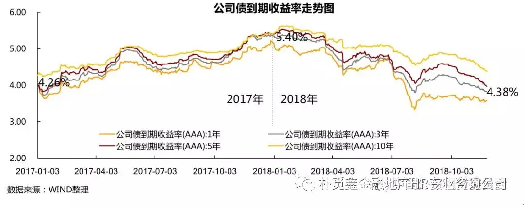 公司债利率与2017年趋势相反,2018年开始逐步下行,并在8月初达到低点,可以说全年都处于下降通道内。