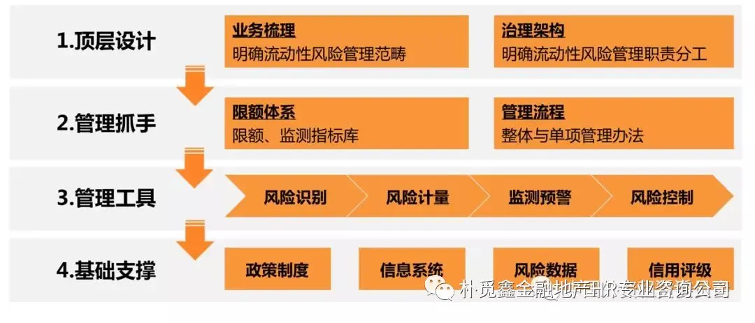 顶层设计:主要包括业务梳理和治理架构,建立由“决策层、执行层、监督层”构成的治理架构,明确流动性风险管理的范畴以及各部门的职责分工。
