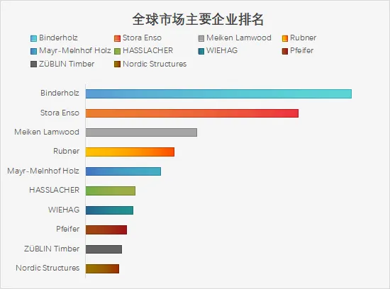 全球范围内,大型木构建筑主要生产商包括Binderholz、Stora Enso、Meiken Lamwood、Rubner、Mayr-Melnhof Holz等,其中前五大厂商占有大约10.28%的市场份额。