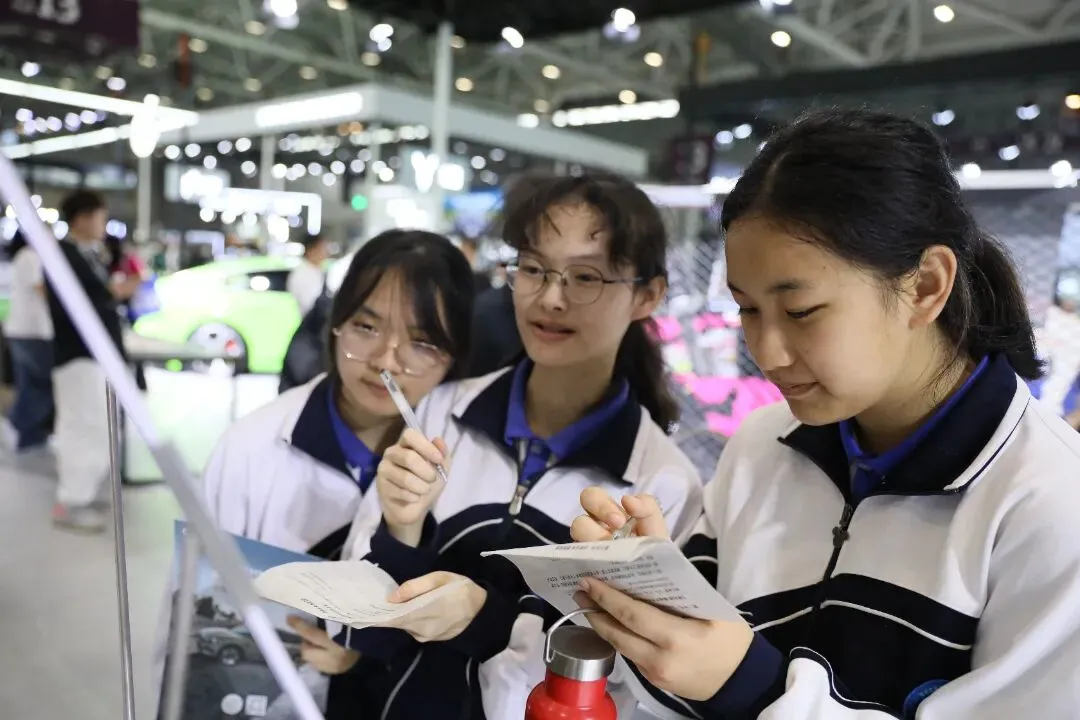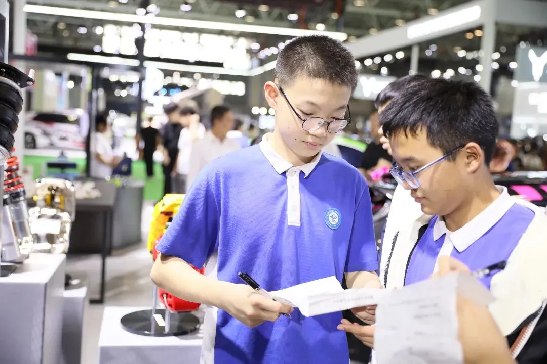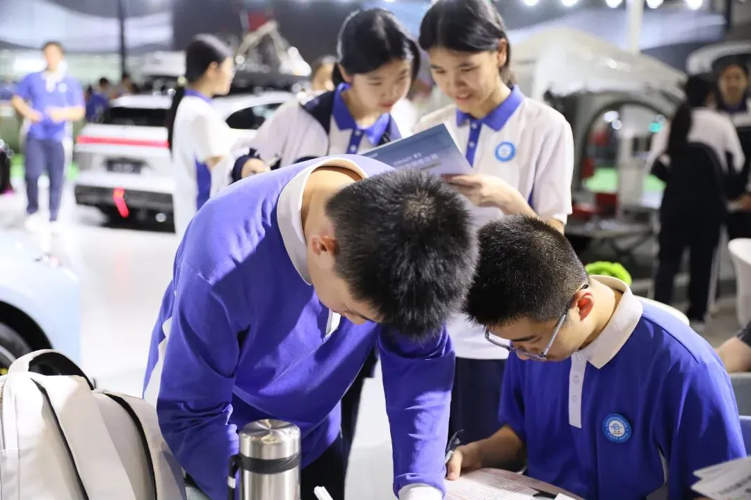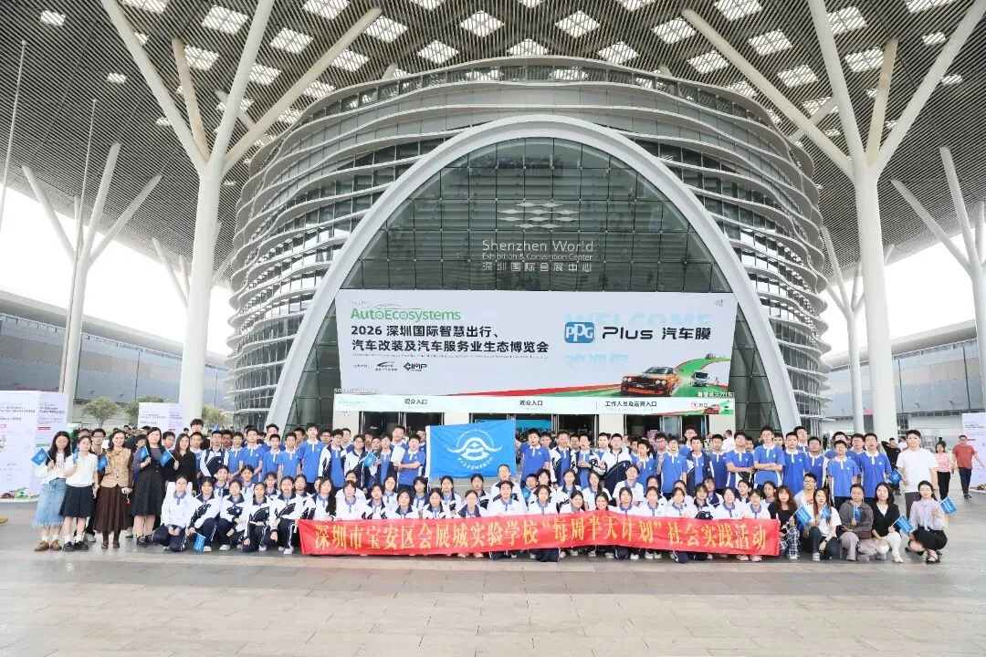近日,会展城实验学校八年级的同学们将课堂“搬”进了深圳国际会展中心——在2026九州汽车生态博览会上,一节融合了科技探索、动手实践与跨学科学习的“未来课堂”正在进行。
