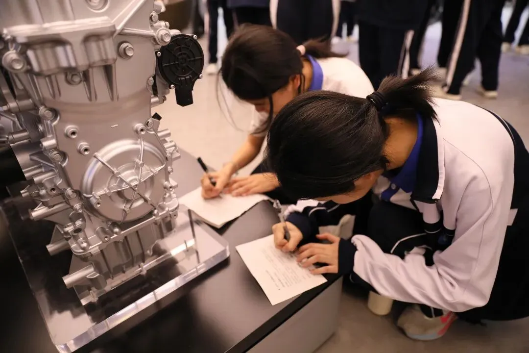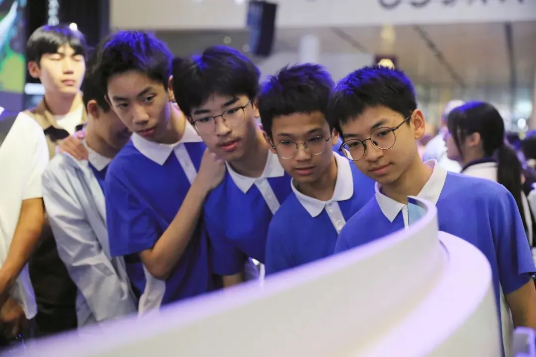 在老师的引导下,同学们对照展品,将物理、信息技术等学科知识与真实科技一一对应。他们边看、边问、边记录,在沉浸式体验中,科技不再是抽象的概念,而是可触摸、可感知的未来生活。