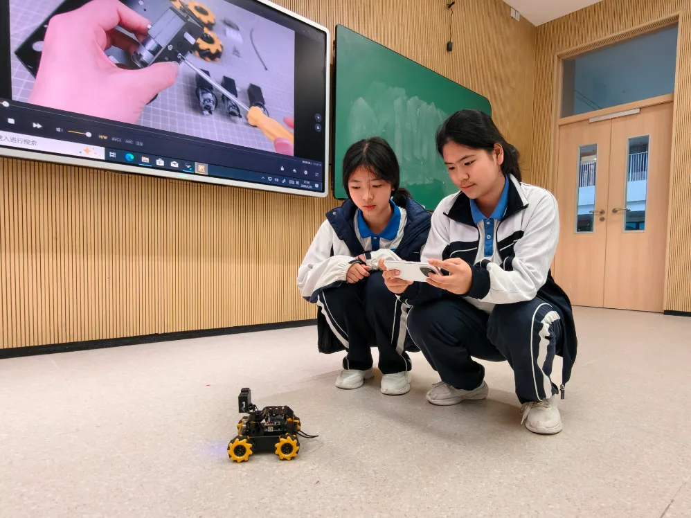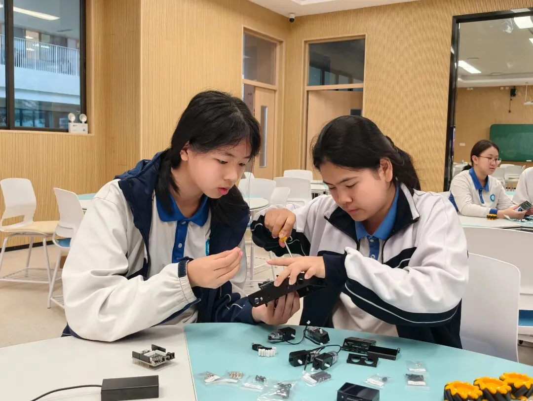 回到学校,同学们迅速投入物联网智能小车的组装与调试。主控板、传感器、电机……零件在他们手中逐渐变成一辆辆能自动避障、可无线联动的小车。