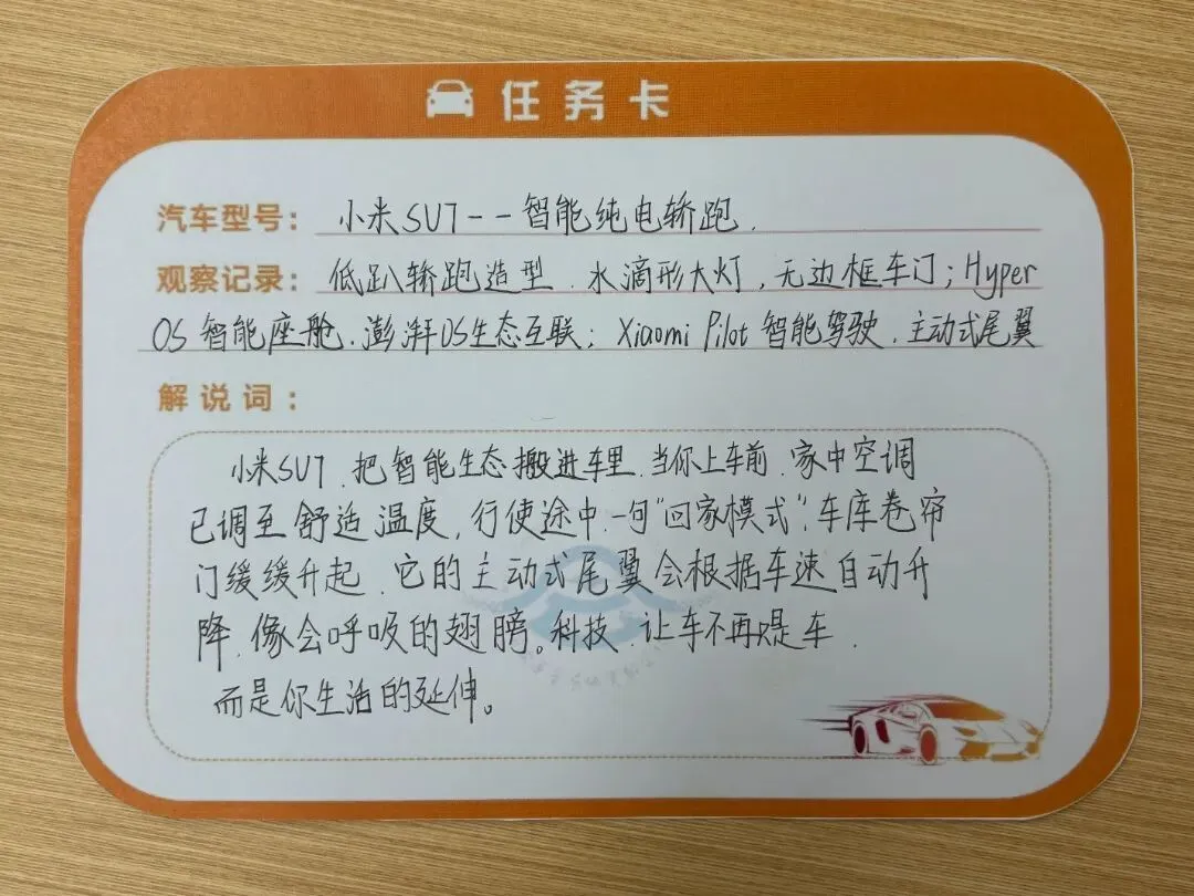 语文组:为不同车型撰写解说文案