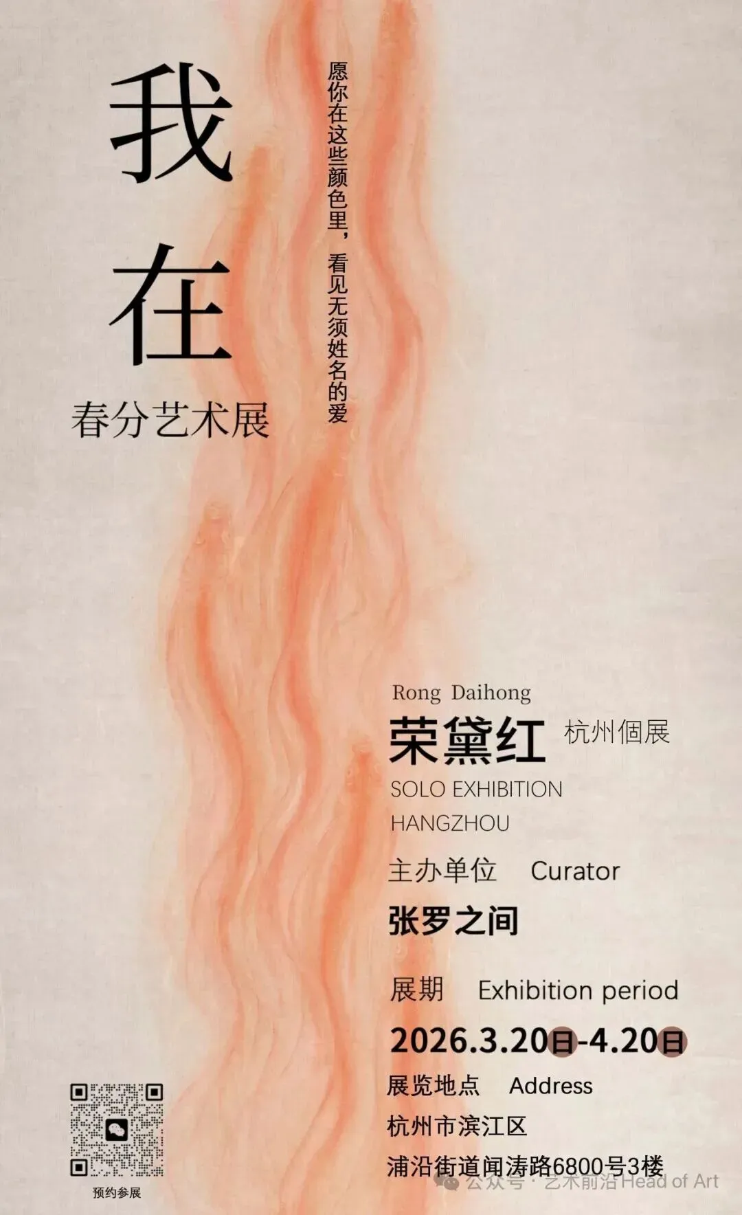 以“我在”为核心命题,艺术家荣黛红用绘画与行为艺术,诠释生命、爱与自我存在。展览摒弃传统开幕式,将自然、仪式与艺术融为一体——静默之路、即兴挥毫、行为艺术签到,每一处都在邀请你从喧嚣中抽身,完成一场与自我的春日对话。