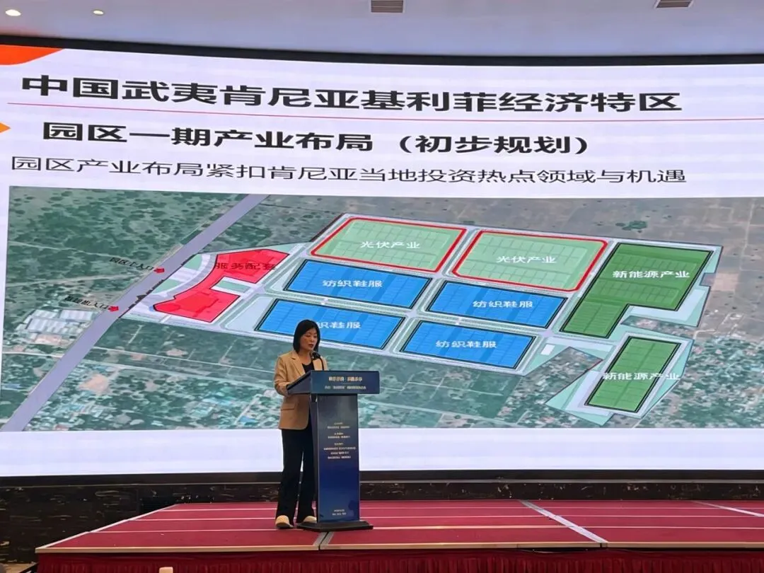 在主题分享环节,中国武夷作为福建省国际商会“走出去”专业委员会主任委员单位,重点分享了深耕肯尼亚市场的经营成果,详细介绍肯尼亚基利菲经济特区的总体规划、产业布局、独特区位优势及丰厚政策红利,并同步推介全方位的企业出海“落地”配套服务。
