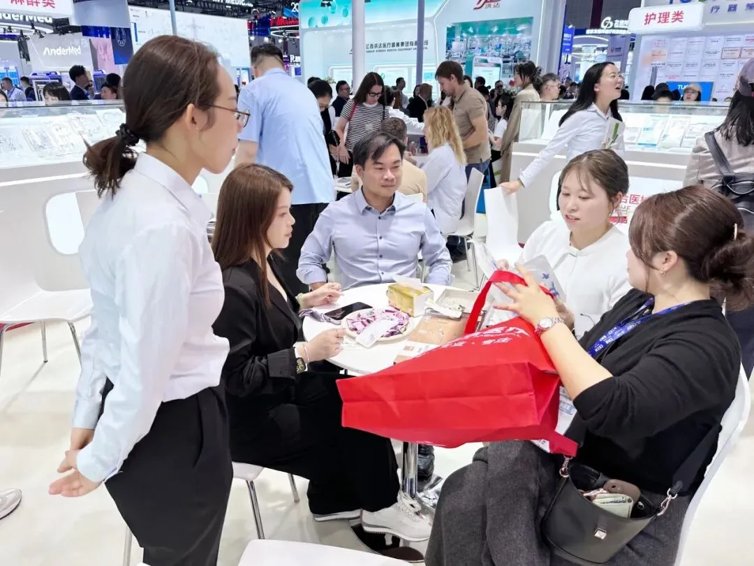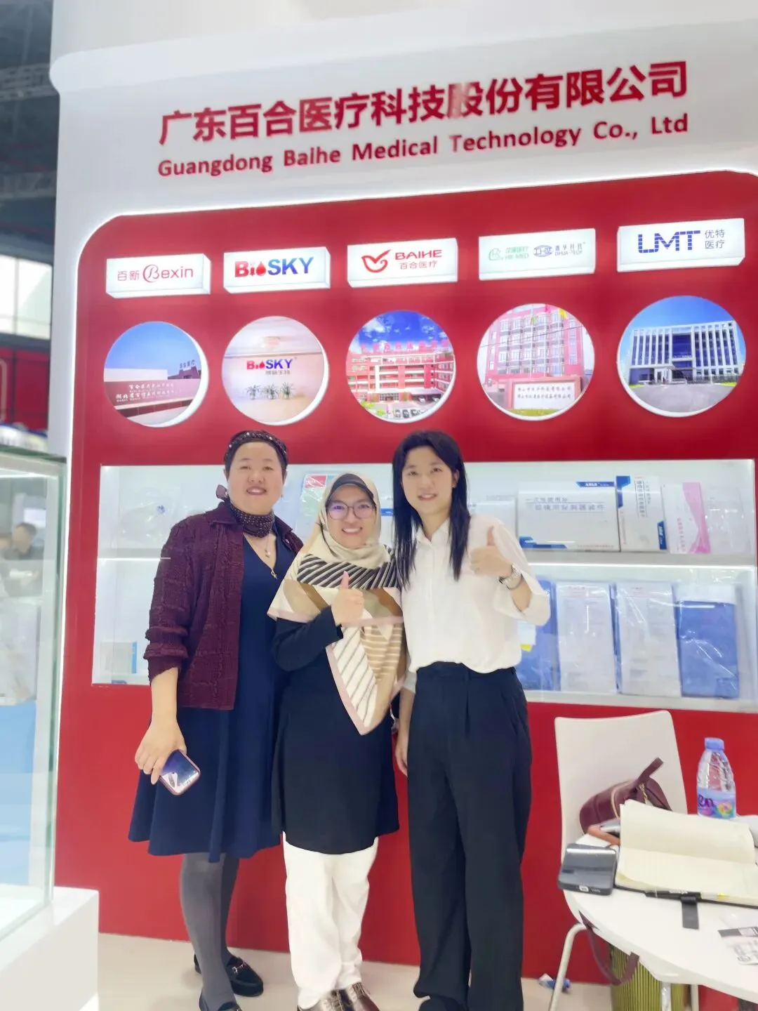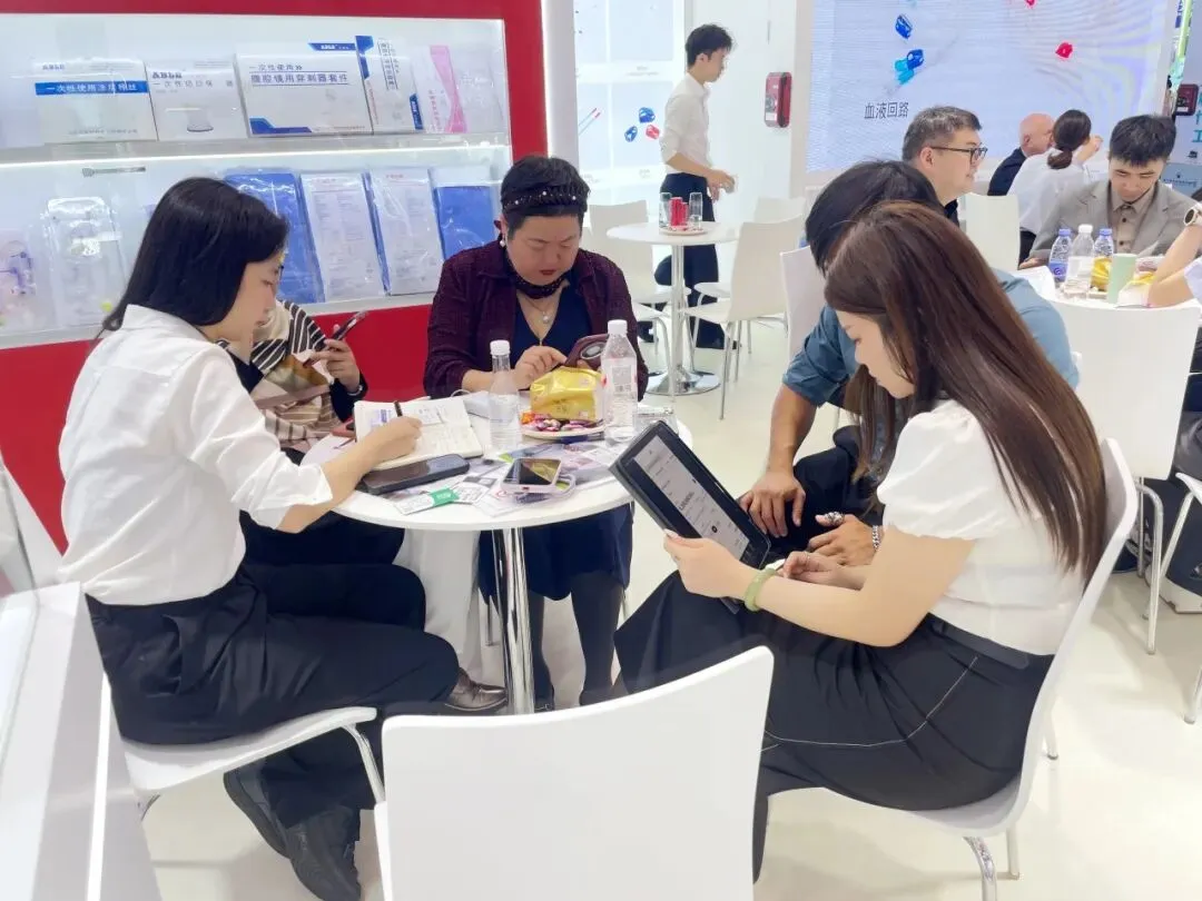 展会开幕以来,6.2G33展位人气高涨。百合医疗专业人员为海内外朋友详细讲解产品优势和临床解决方案。从技术探讨到商务洽谈,展台现场气氛热烈,充分展现了百合医疗在输液管理、血液净化等一次性医用耗材领域的深厚底蕴。