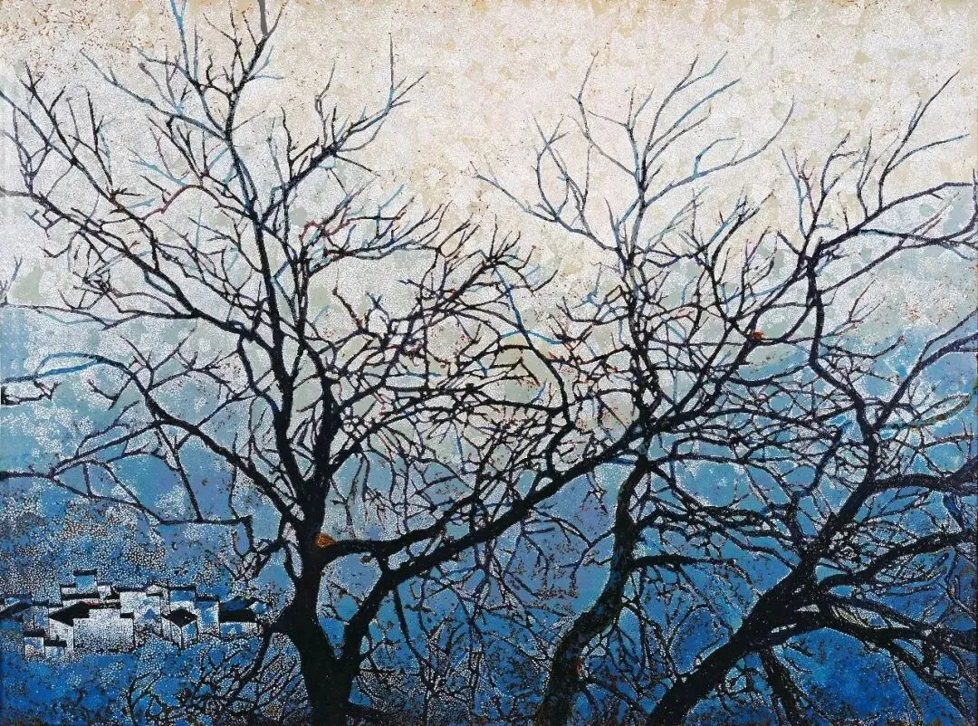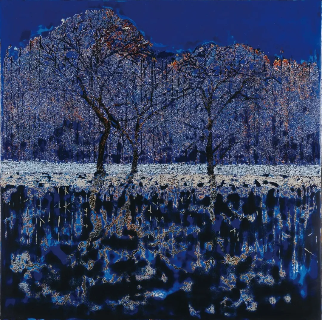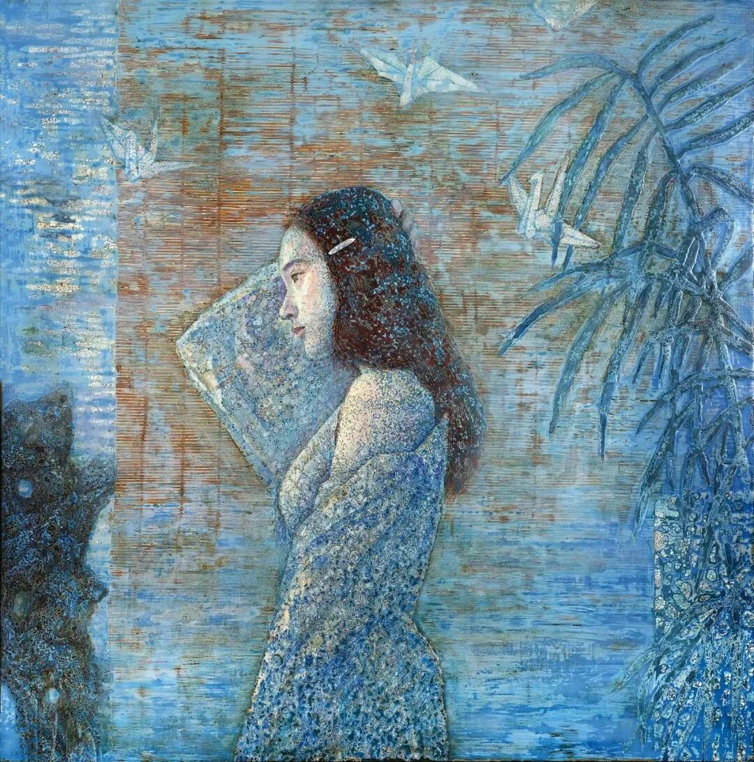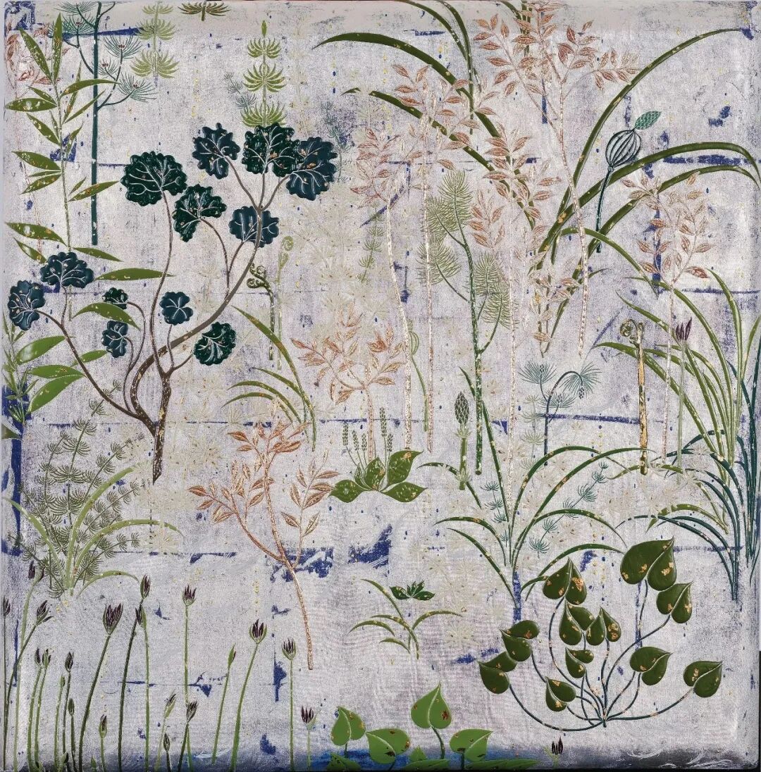 杜冬梅《碧色光阴忆流年》漆画80x80cm河南