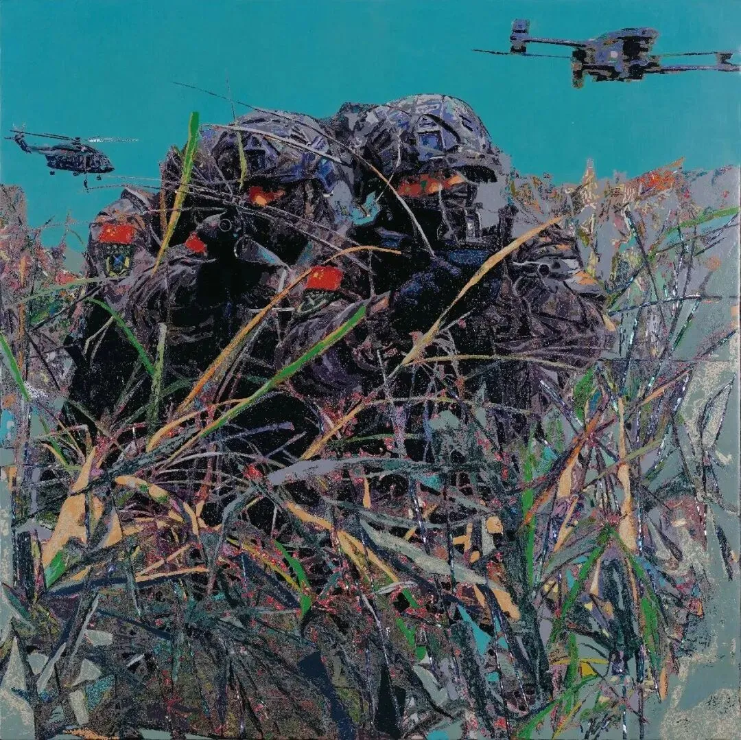 陈拓《丛林尖兵》漆画 60x60cm 福建