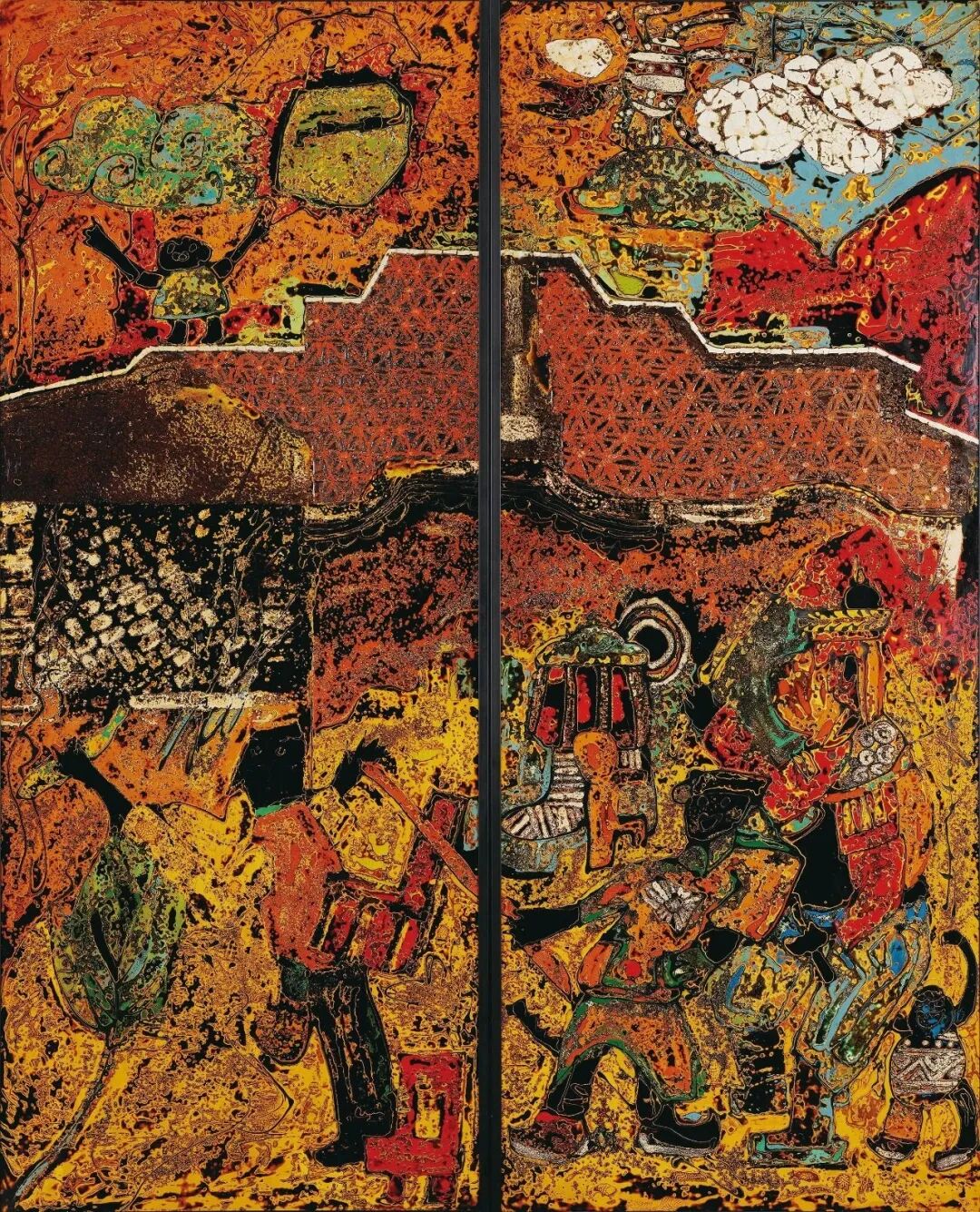 邓宁 吴仕强《乐园》漆画45x60cm 湖南