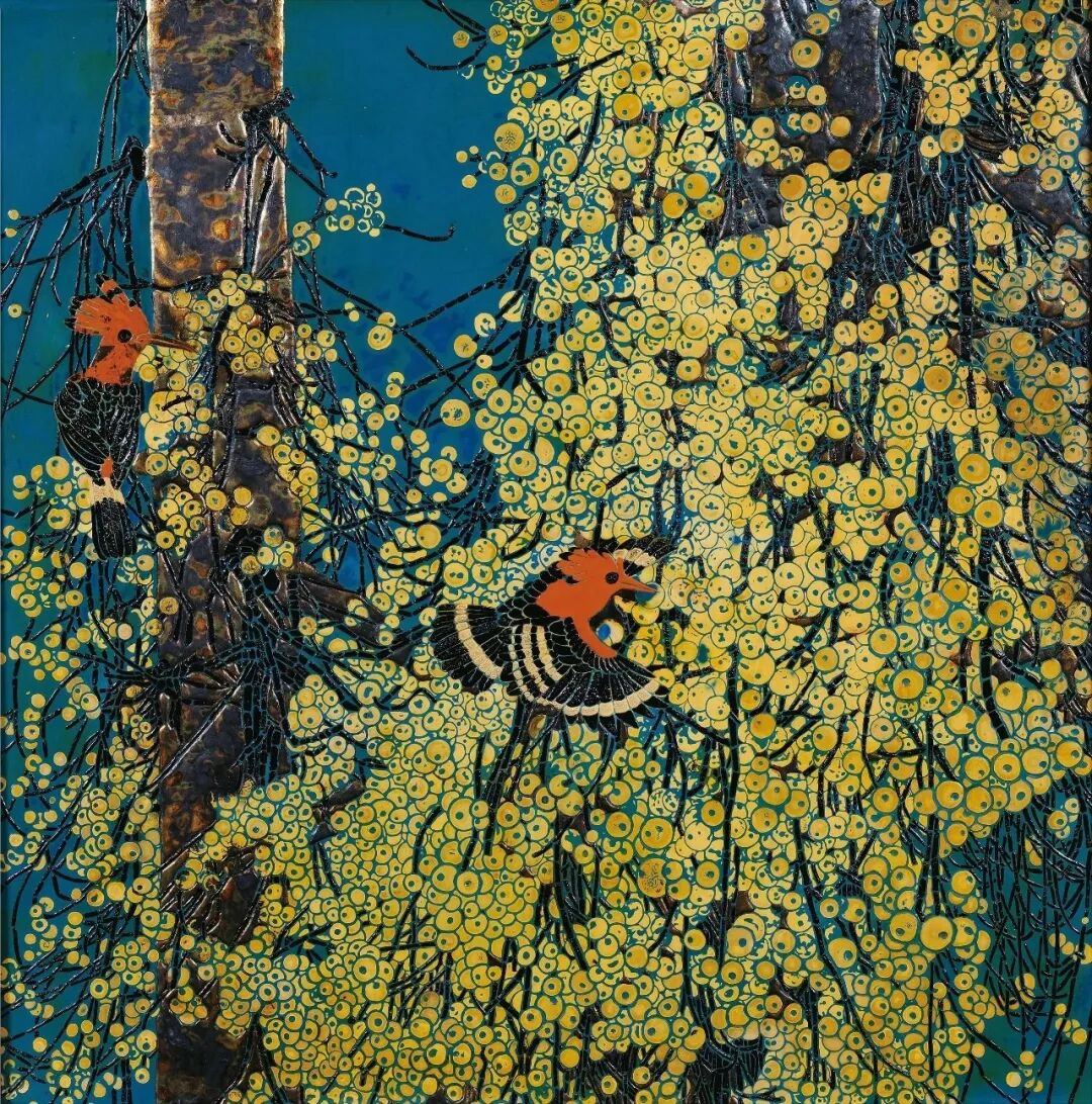 方彦钦《竞自由》80×80cm漆画 江西