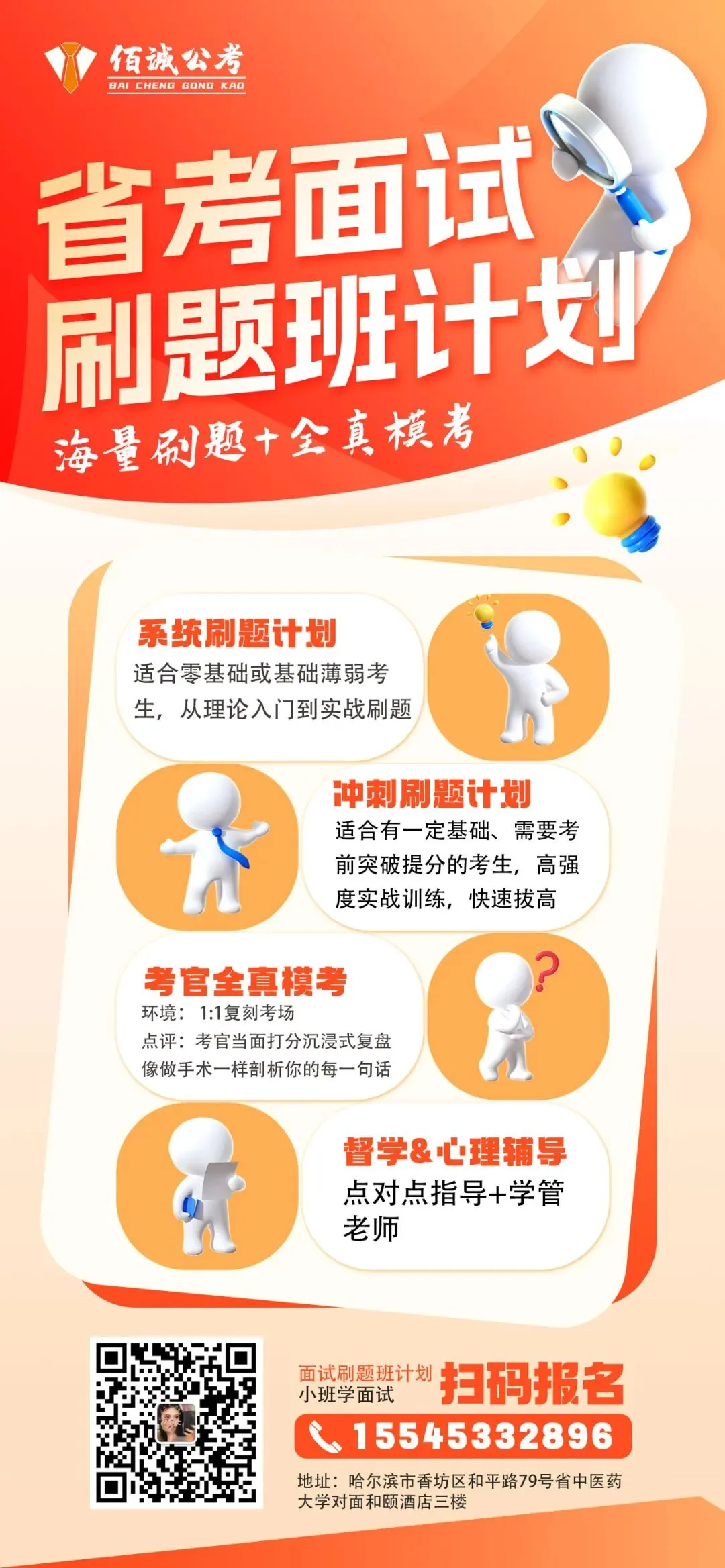 佰诚公考坚持以教育为本。申论全程一对一进行批改,行测全程针对每位学生的薄弱项目进行一对一辅导!哪里不会补哪里,用最短的时间,最有效的方法快速提升每位学生的成绩!面试全程一对一精准点评,针对解决短板问题;全真模考模拟真实考试流程、考场环境、考官点评,讲练结合,提分无忧!