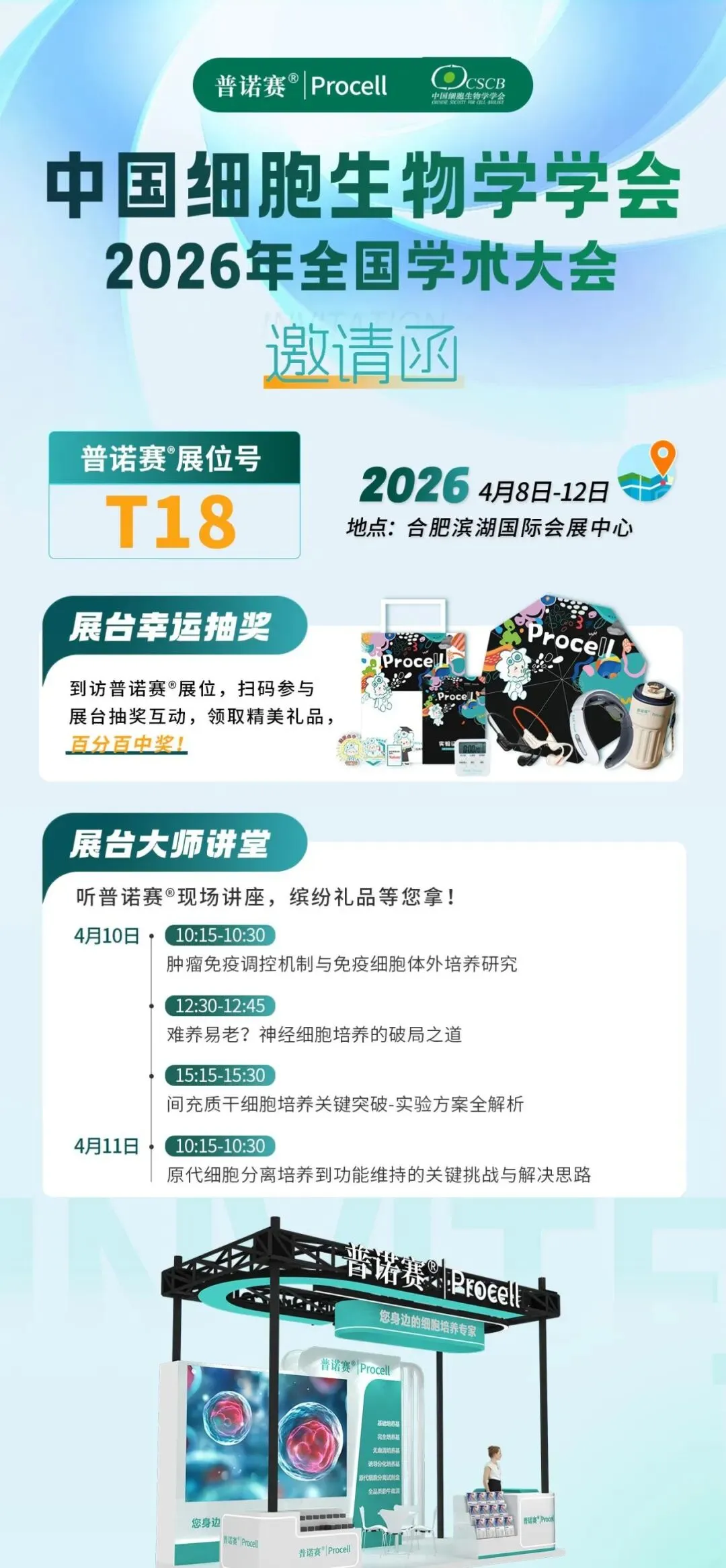 普诺赛®受邀参与本次大会,将带来细胞系、原代细胞、细胞培养基、血清及辅助试剂等相关产品参展。诚邀各位专家学者莅临展位,共话科研前沿,参与互动还可收获精美礼品,期待与您相聚!