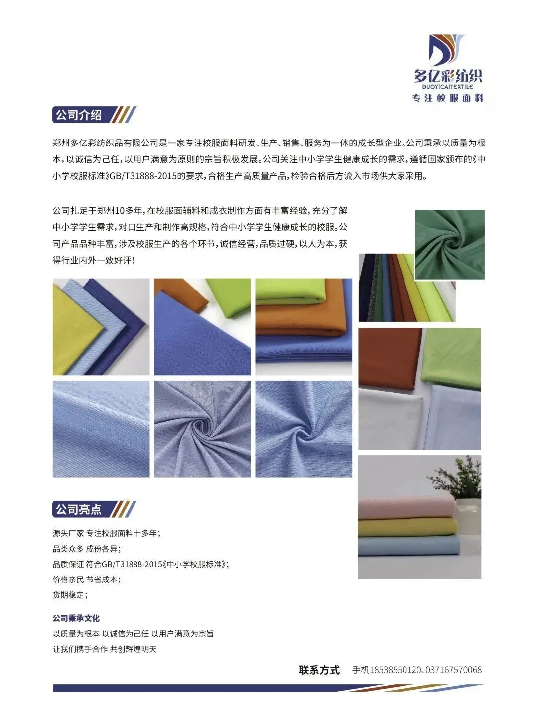 目前已有众多校服生产企业、面辅料企业将在博览会上展示校服园服上下游产业链创新产品和前沿技术。以下为部分品牌的展品剧透,让我们拭目以待!