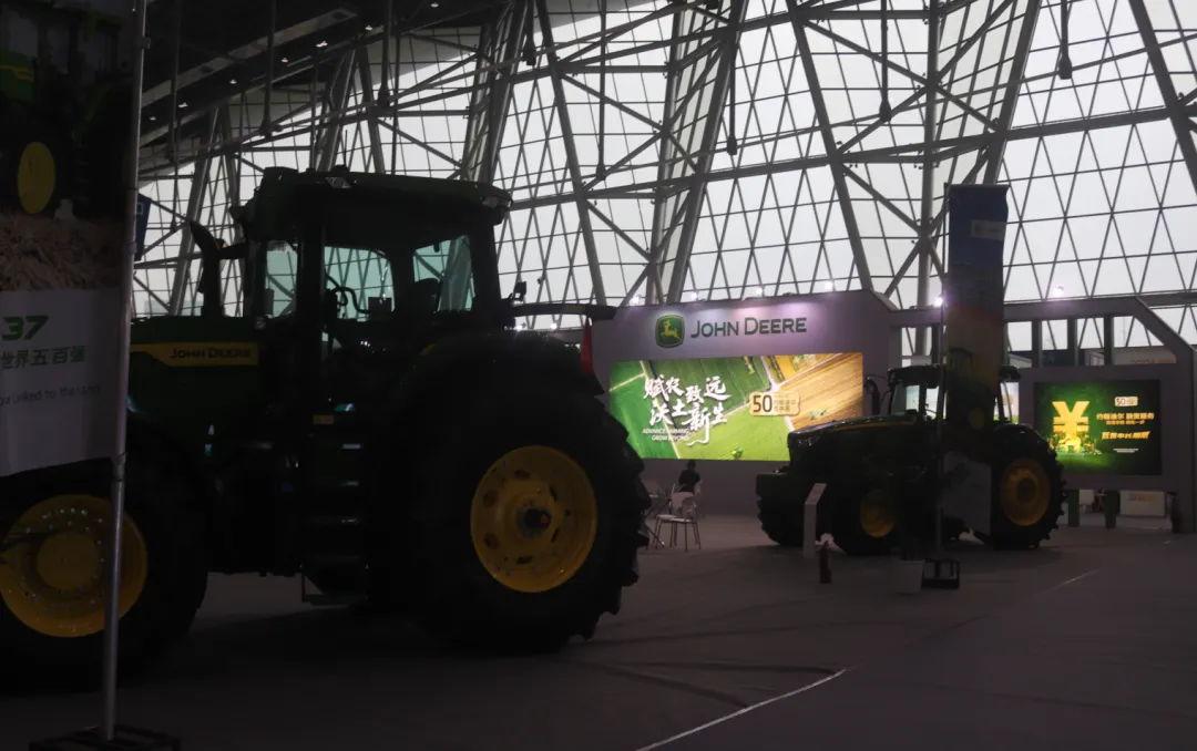展会上,约翰迪尔(JOHN DEERE)、雷沃(LOVOL)等国内外知名品牌展示了其最新型号的智能拖拉机。