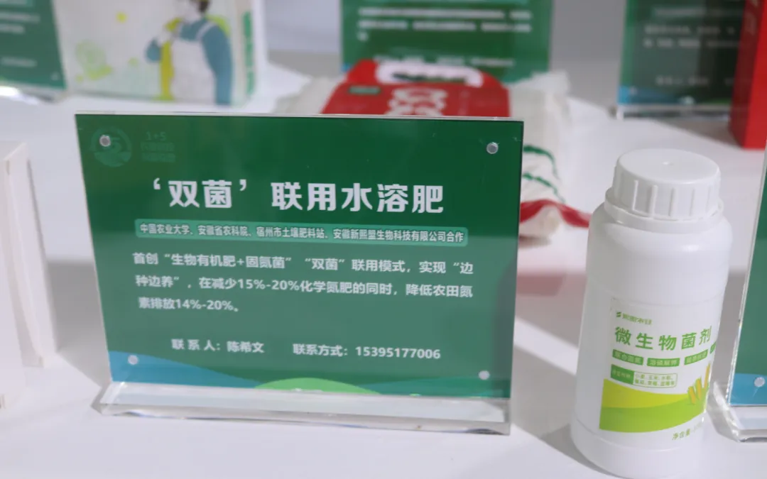该产品由中国农业大学、安徽省农科院等单位合作开发,首创“生物有机肥+固氮菌”双菌联用模式,实现“边种边养”,可在减少15%-20%化学氮肥使用的同时,降低农田氮素排放14%-20%。