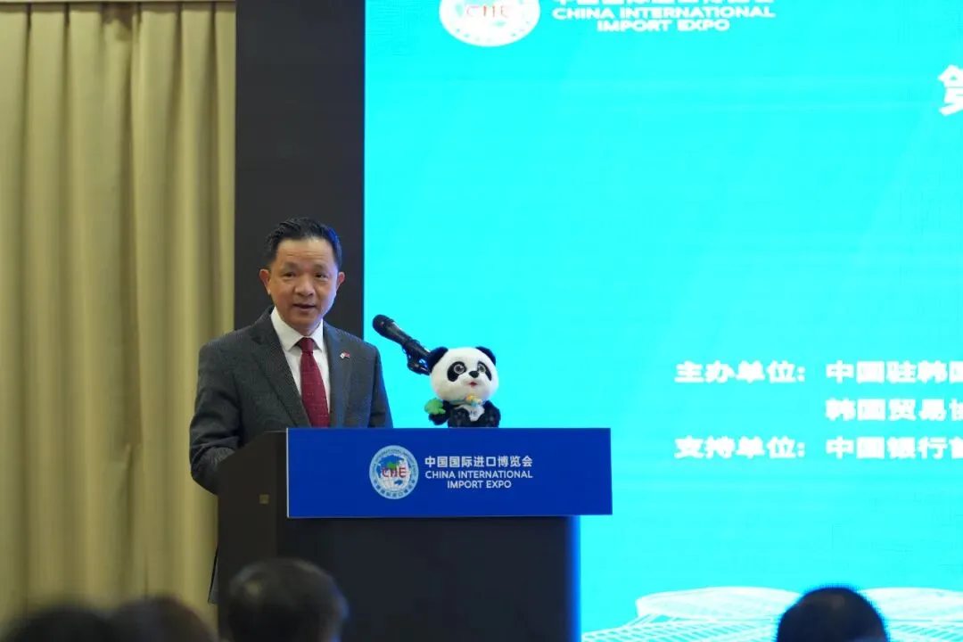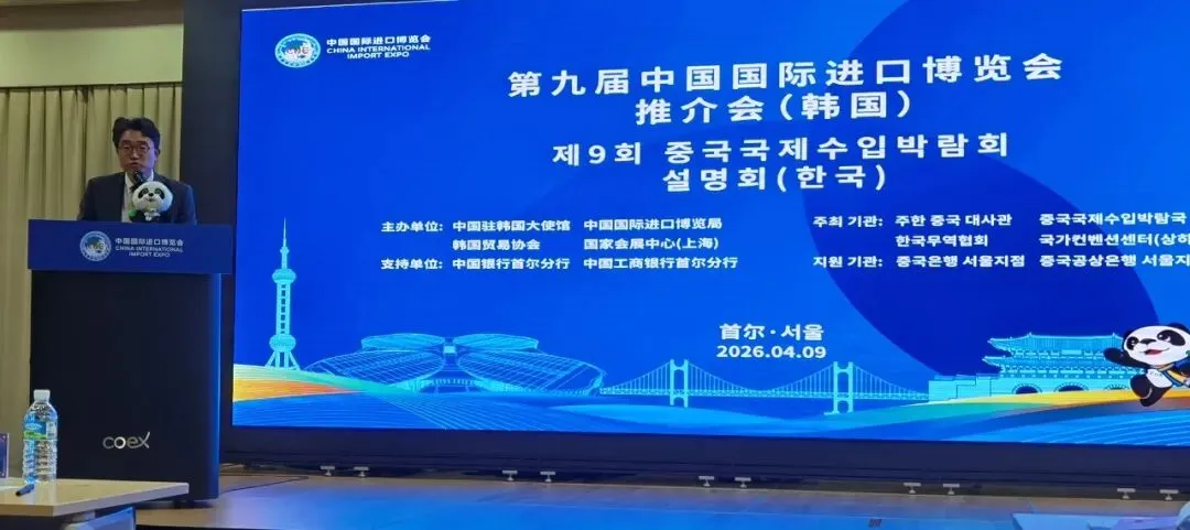 4月9日,由中国驻韩国大使馆、中国国际进口博览局、韩国贸易协会、国家会展中心(上海)共同主办的第九届中国国际进口博览会推介会在韩国首尔举行。戴兵大使、中国国际进口博览局吴政平副局长、韩国产业通商部通商协力局裴晙亨局长、韩国贸易协会张石民专务理事等嘉宾致辞,两国企业和行业商协会、媒体共120多人参会。