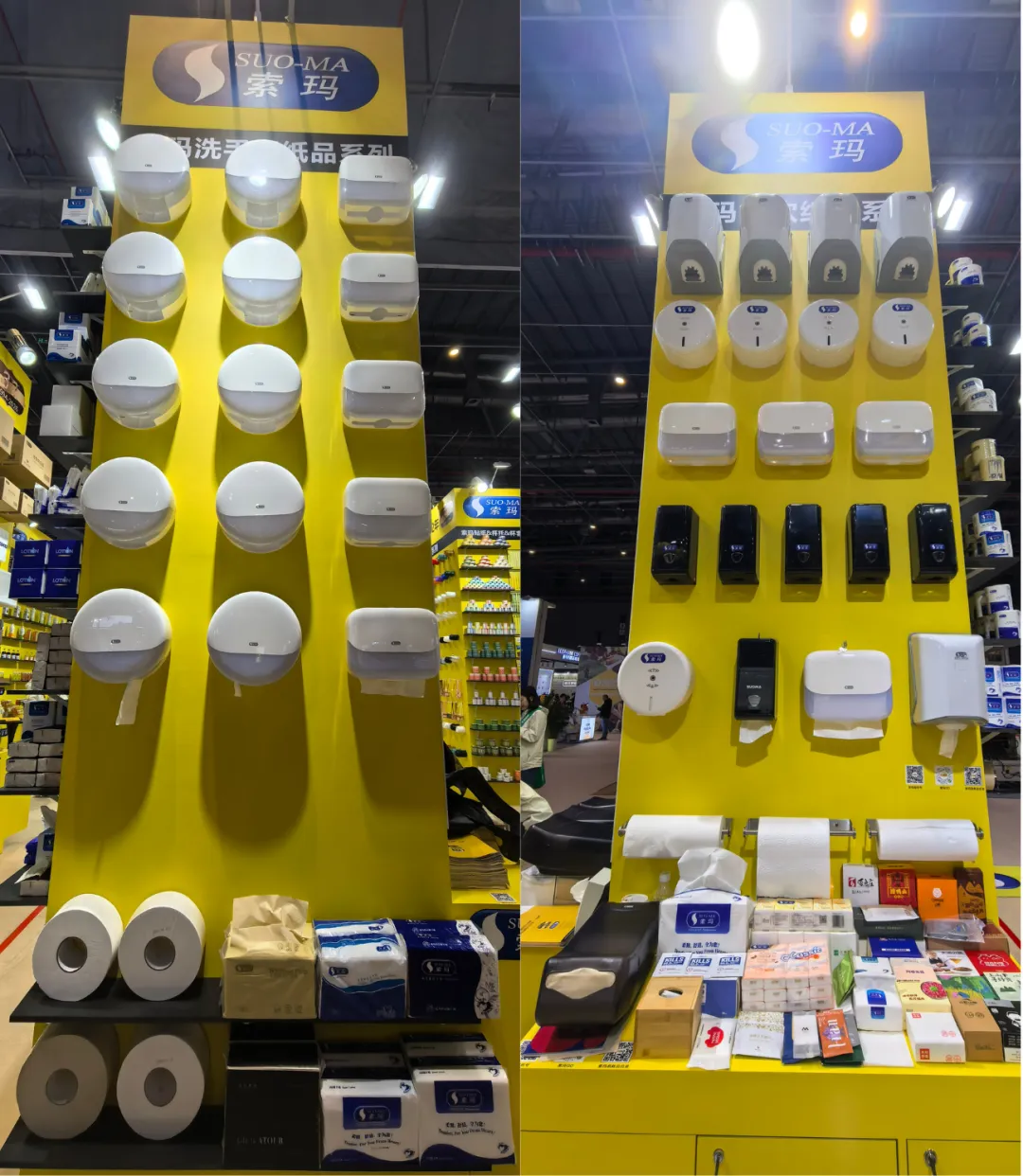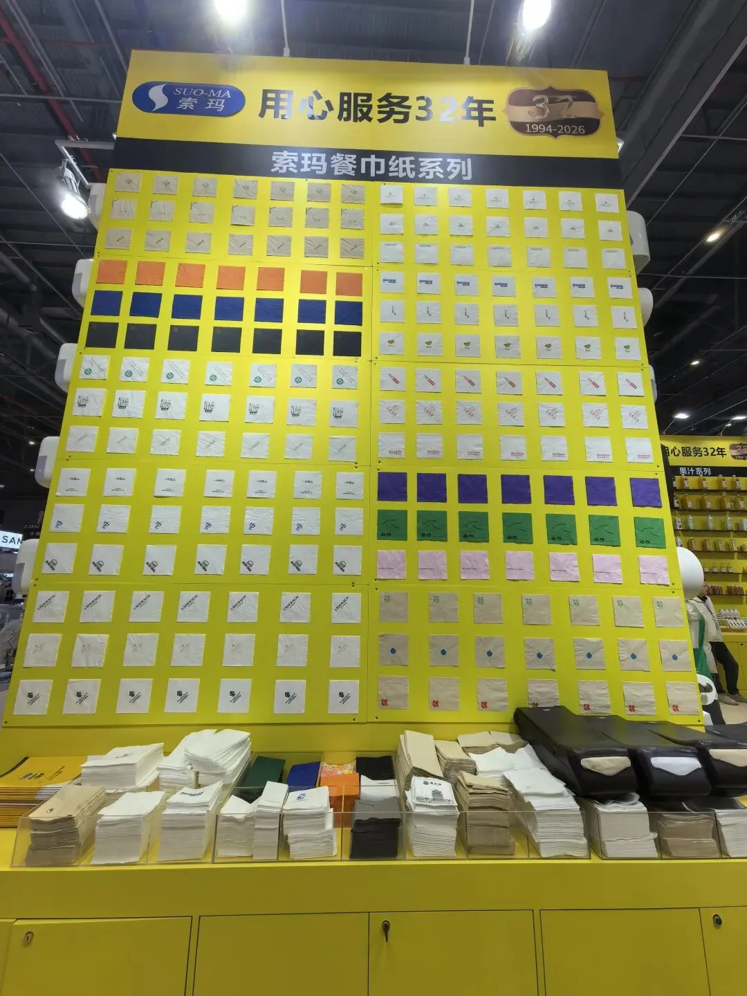 无论是简约大气的连锁酒店场景,还是充满活力的连锁餐厅需求,都能在这里找到精准适配的产品解决方案。不少观展者驻足停留,亲手触摸体验产品质感,对其做工与实用性频频点头称赞,现场互动氛围十分热烈,充分彰显了索玛在易耗品领域的匠心坚守与专业实力。